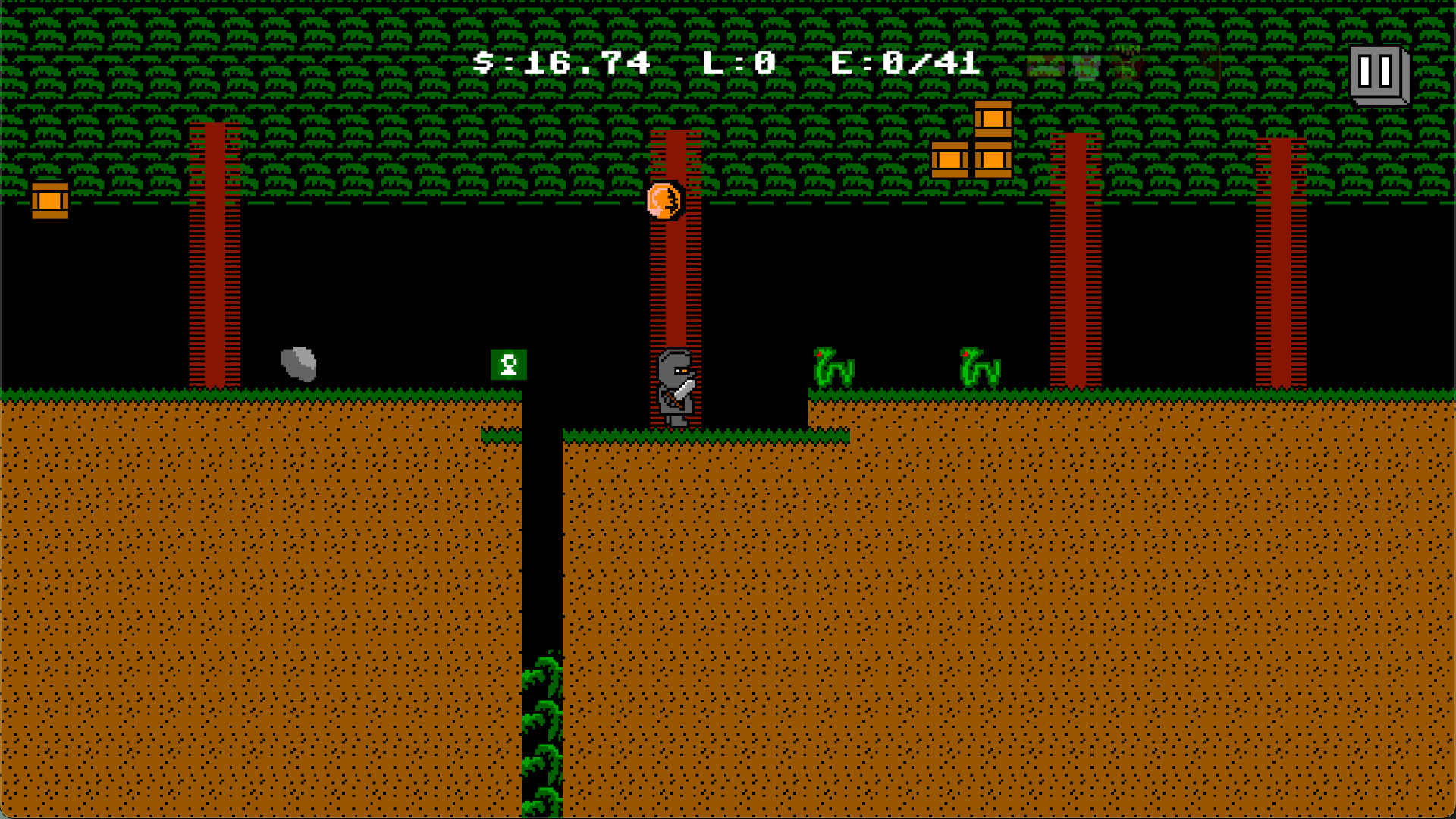 An 8-bit styled platform game.  Running and Jumping sidescrolling, lots of powerups in an 8-bit world.  30 levels with hidden items to collect.  Each level has 3 hidden items to collect, a hoagie, a soda, and a French fries.  There is also a magic door that leads to a secret room with coins.  Collect each on every level to unlock the brickball game.  Collect coins to buy power ups, like the wizard hat, turning you into a wizard that can float and shoot freezing ice that turns enemies into snowballs you can throw, or get the hammer and throw hammers at enemies.