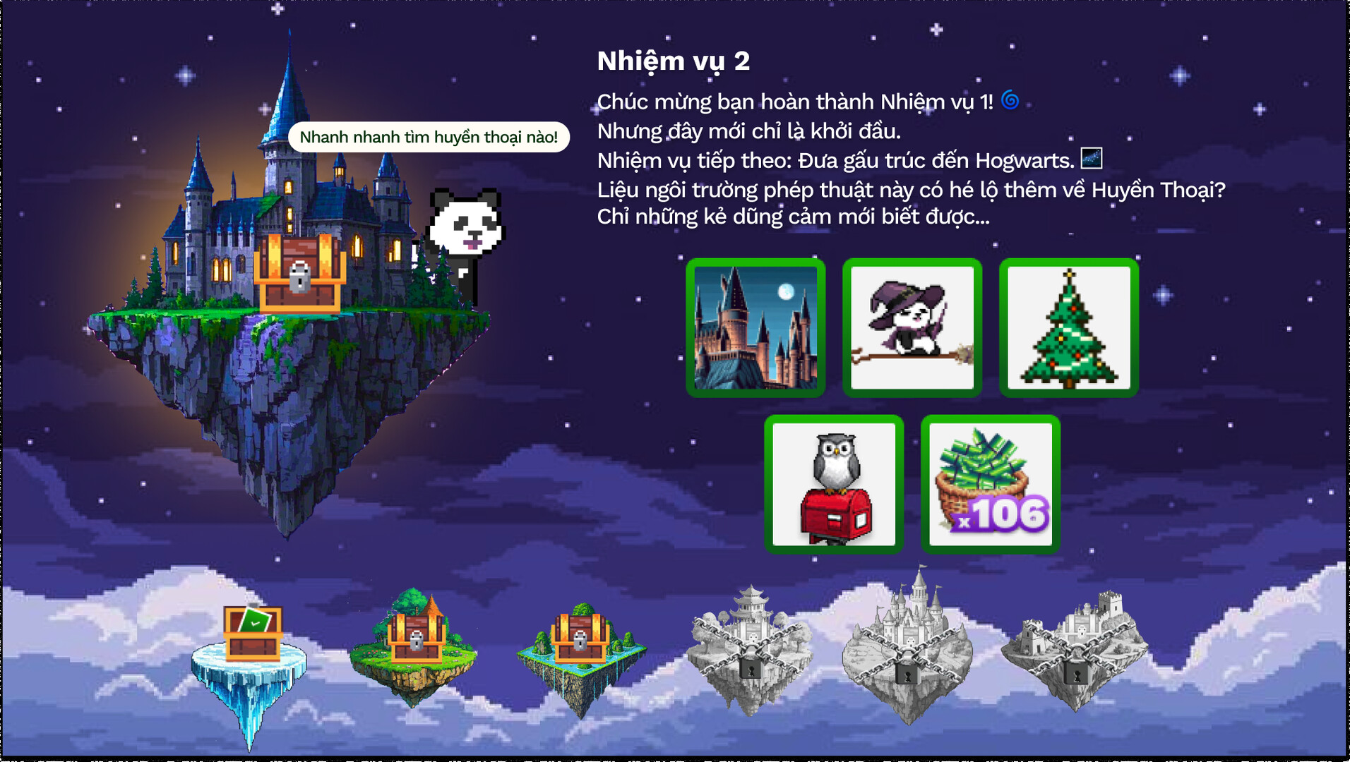 • Hệ thống nhiệm vụ: Đi tìm huyền thoại: Mở 4 trên 7 vùng đất để tìm kiếm các gợi ý.