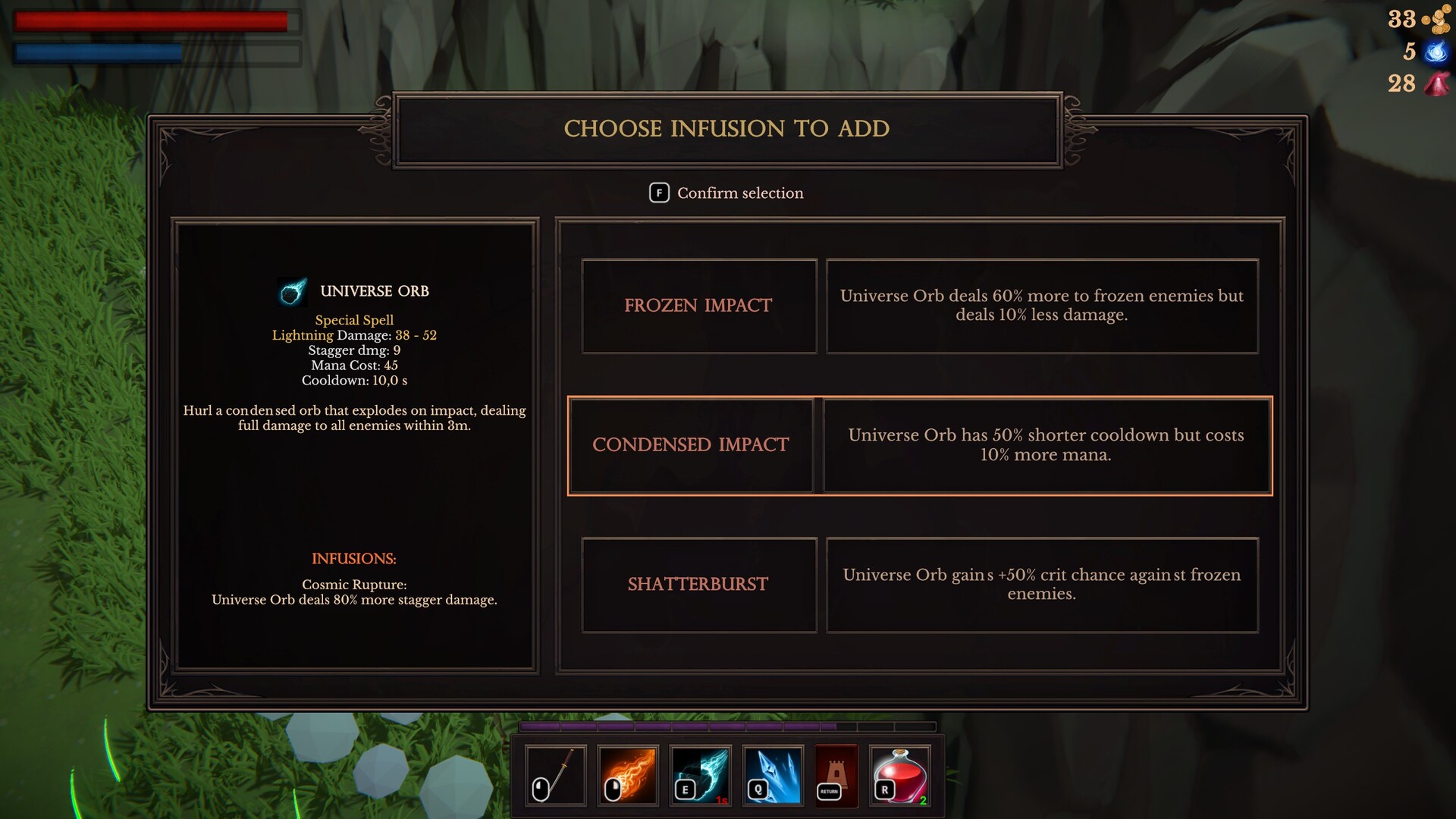 • Weapon–Spell Choices: Start every run by picking from three unique weapon–spell combos, sometimes already infused with modifiers.