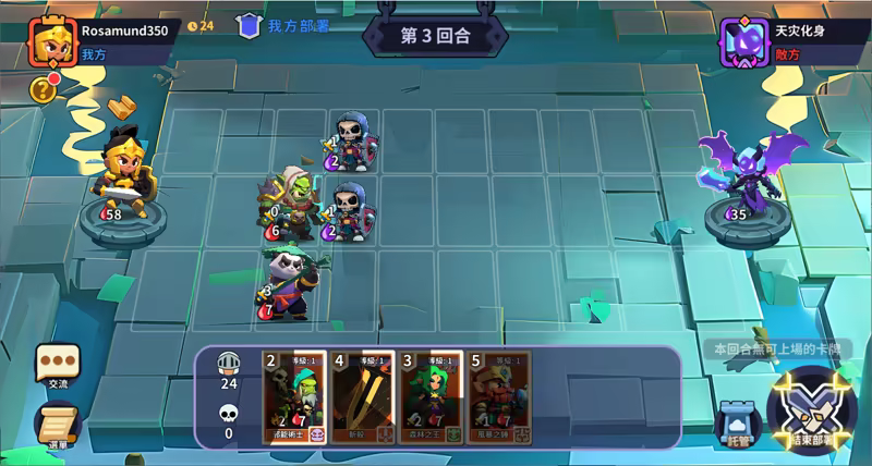 ◆ 玩法:玩家在3*10的場地上,利用各自的卡組進行對戰。敵我雙方輪流行動,直到對方主將或我方主將被擊敗為止。