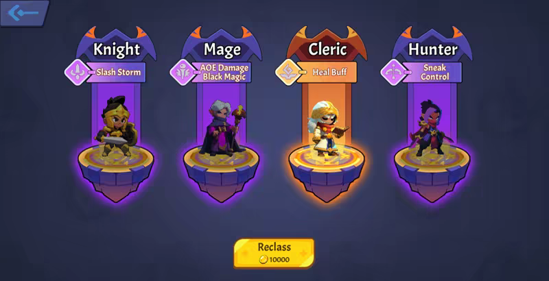 • Classes: Players can freely choose between four classes: Knight, Mage, Priest, and Hunter. Each deck can only use cards from a single class.