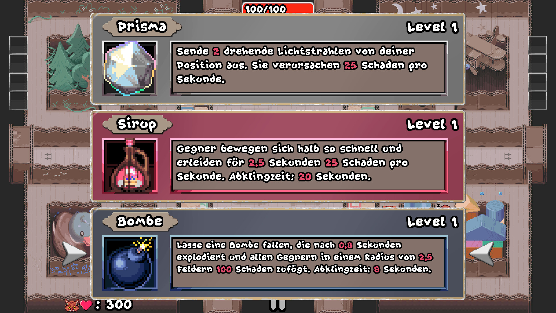 Maze Mice ist ein Bullet Heaven Roguelite, in dem die Zeit nur voranschreitet, wenn du dich bewegst. Sammle Punkte, steige im Level auf, wähle Upgrades und vermeide Katzen. Alles in deiner eigenen Geschwindigkeit.
