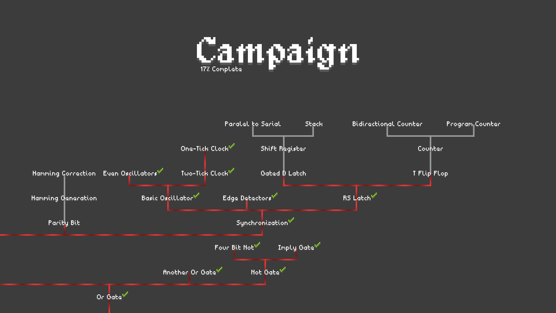A logic puzzle game where you redirect and split laser beams to create digital circuits. Through the campaign, you will explore basic logic gates, oscillators, latches, counters, adders, memory, and more.