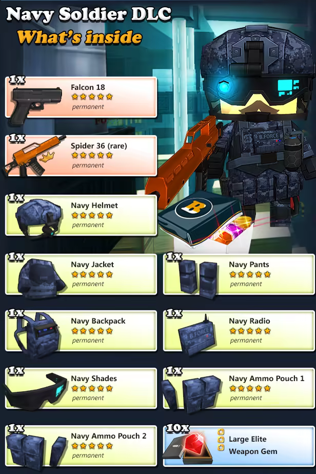 Notice: At the request of the publisher, Brick-Force: Navy Soldier DLC is unlisted on the Steam store and will not appear in search.