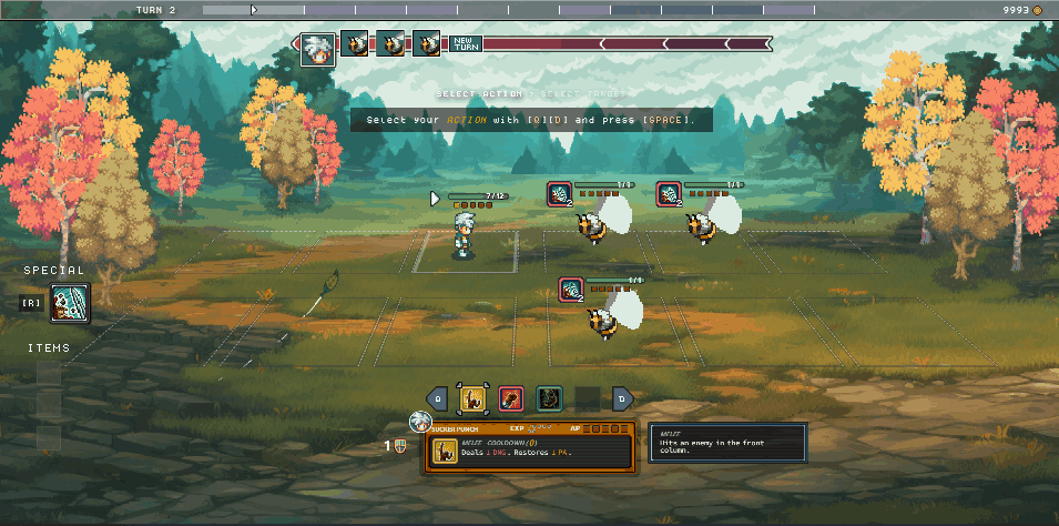 Combat uses an action point system (AP): some attacks consume AP, while others regenerate it. Certain abilities have cooldowns, forcing players to manage resources and timing. Here, it’s not your heroes who level up—it’s their attacks. Each one gains experience and can evolve through different upgrade paths, letting you shape unique builds and strategies.