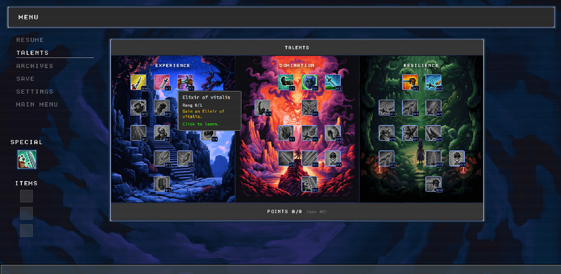 Explore a branching map and choose your path from 30+ events: battles, new attacks, shops, upgrades, equipment, or mini-games. Progress through 4 chapters of fights, minibosses, and unique bosses. Each run lets you improve, discover strategies, and earn tokens to unlock new power for the next journey.