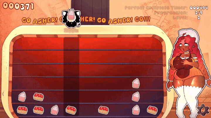 You can move left and right, and use the the interact button (space in computer, X/A in controller) to take or place a pastry. You must organize the pastries so you form all of them into columns of 6 each. Once you finish 9 levels, you will unlock the standard CG and perfect CG if you beat it before the timer ended! After this, you can keep playing indefinitely until you return to the main menu to try out the other levels!