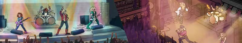 A mashup of turn-based tactics and music games. Rock on turning foes into fans while making lyrical and audio choices during battle to create your own glam metal anthems. Experience a homage to 1990s ensemble dramedies, choosing when to embrace angst or empathy.