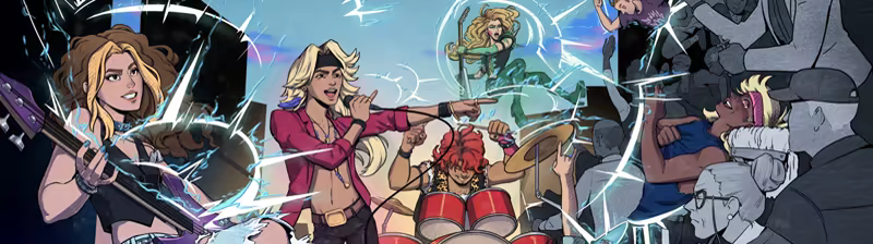 1990. End of an era. Glam metal is on the ropes and one band is thrashing the local music scene. Fight for freedom from the mediocrity of your high school life, turning foes into fans while making lyrical choices during battle to create your own rock anthems. Turn-based tactics turned up to eleven!