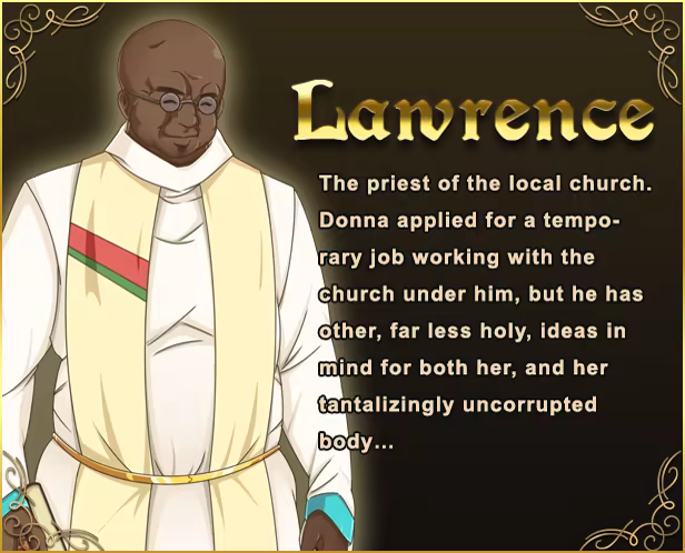 Enjoy a fantasy world where you play as an ordinary (soon to be) housewife, Donna, and journey together with her as she works for Lawrence, the priest of the local church who most certainly only has the holiest of thoughts when he is staring at Donna’s voluptuous body. As Donna completes jobs, she will unlock higher paying tasks, even some of… questionable nature, giving her plenty of ways to earn even more money. But she’s got to do her part to reach her and her fiance’s goal of saving up 10,000 gold for their wedding, so she’ll take on any job that she can get!