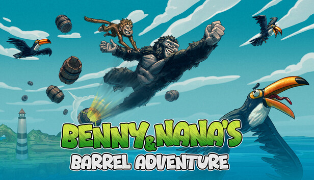 In Benny & Nana's Barrel Adventure you control two charming furry companions as they reclaim their stolen coconut stash from the Long Beak Clan.