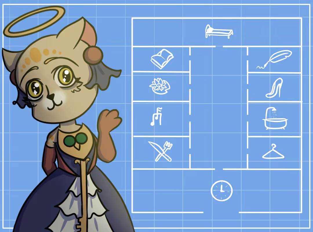 You are Snitcher who has broken into a mansion in search of a invaluable thing. Your guide on this journey will be Keykeeper, who has lost all the keys to the rooms in the mansion. Help her find the keys, and in return she will help you find what you are looking for.