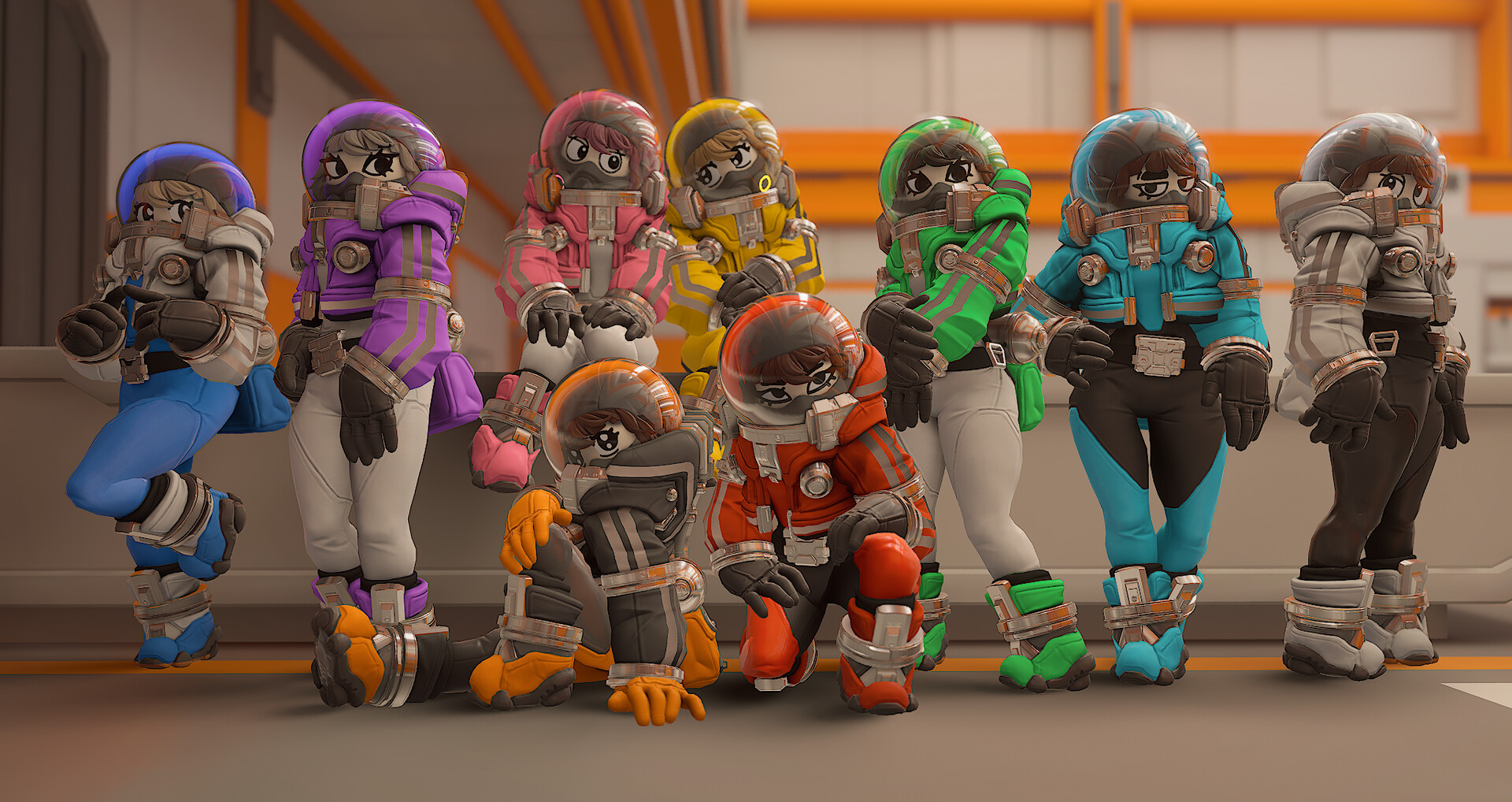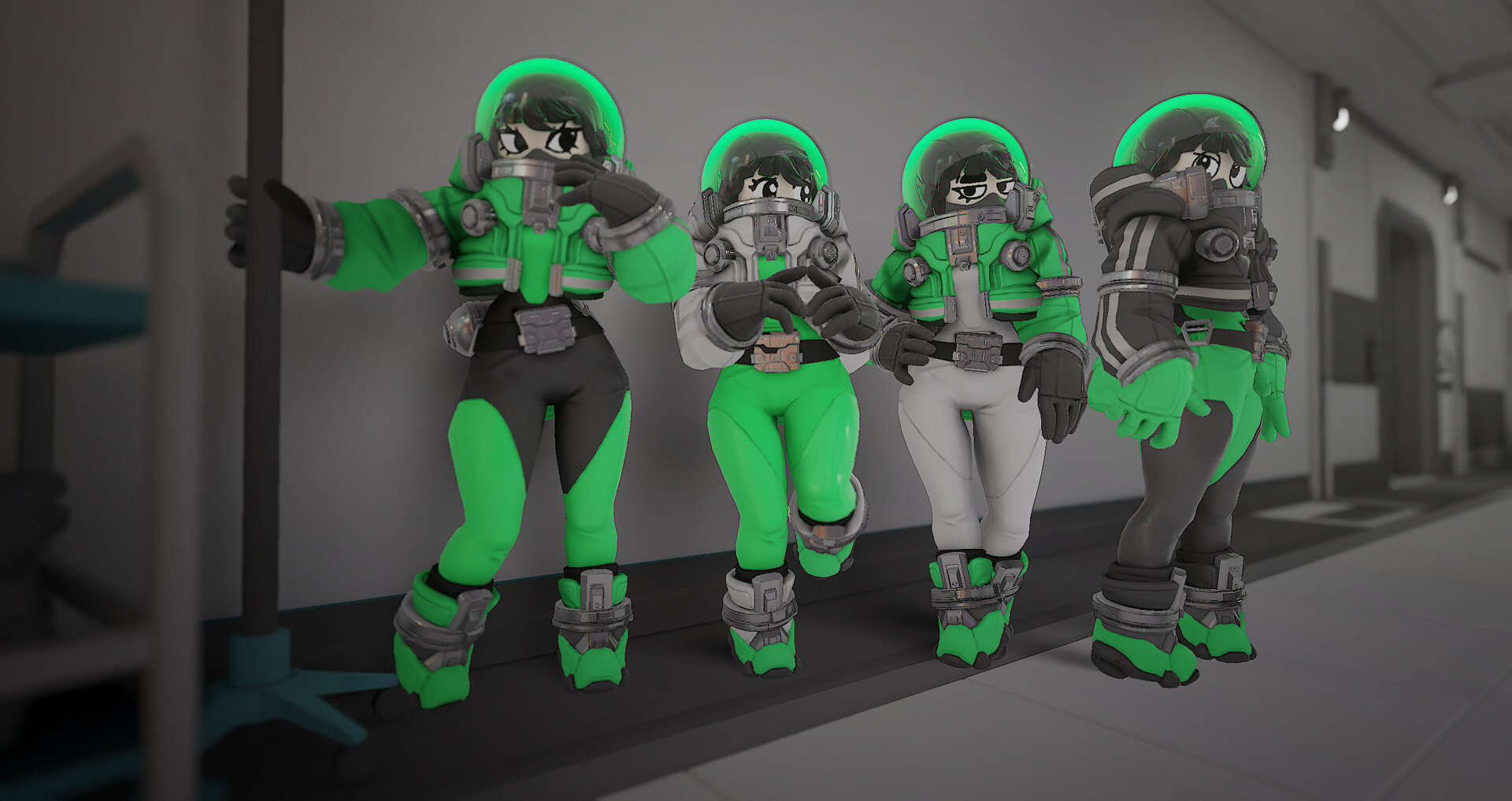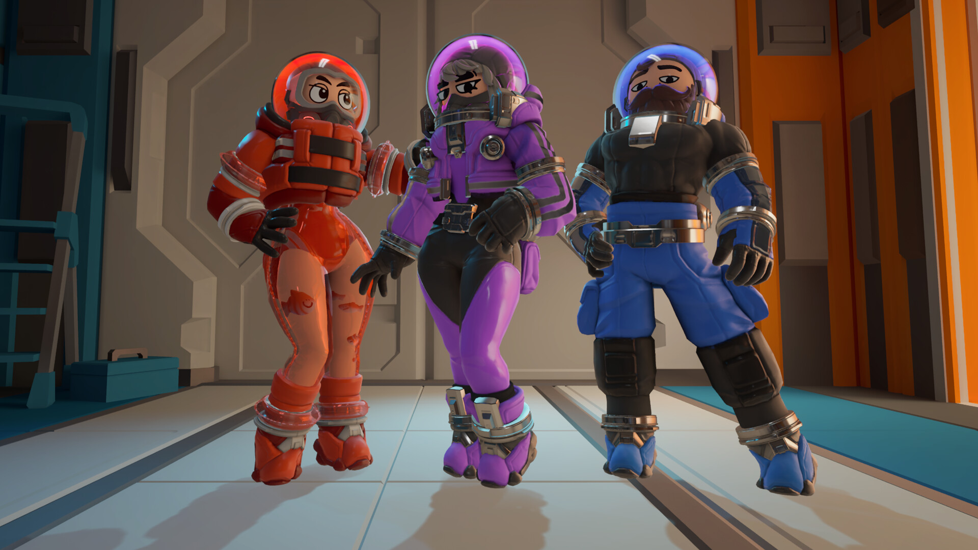 Play as Tiphanie, Theodore and Delphine, three skins that completely changes the body of the character ! Come with a unique suit and head design, interchangeable with other cosmetics.