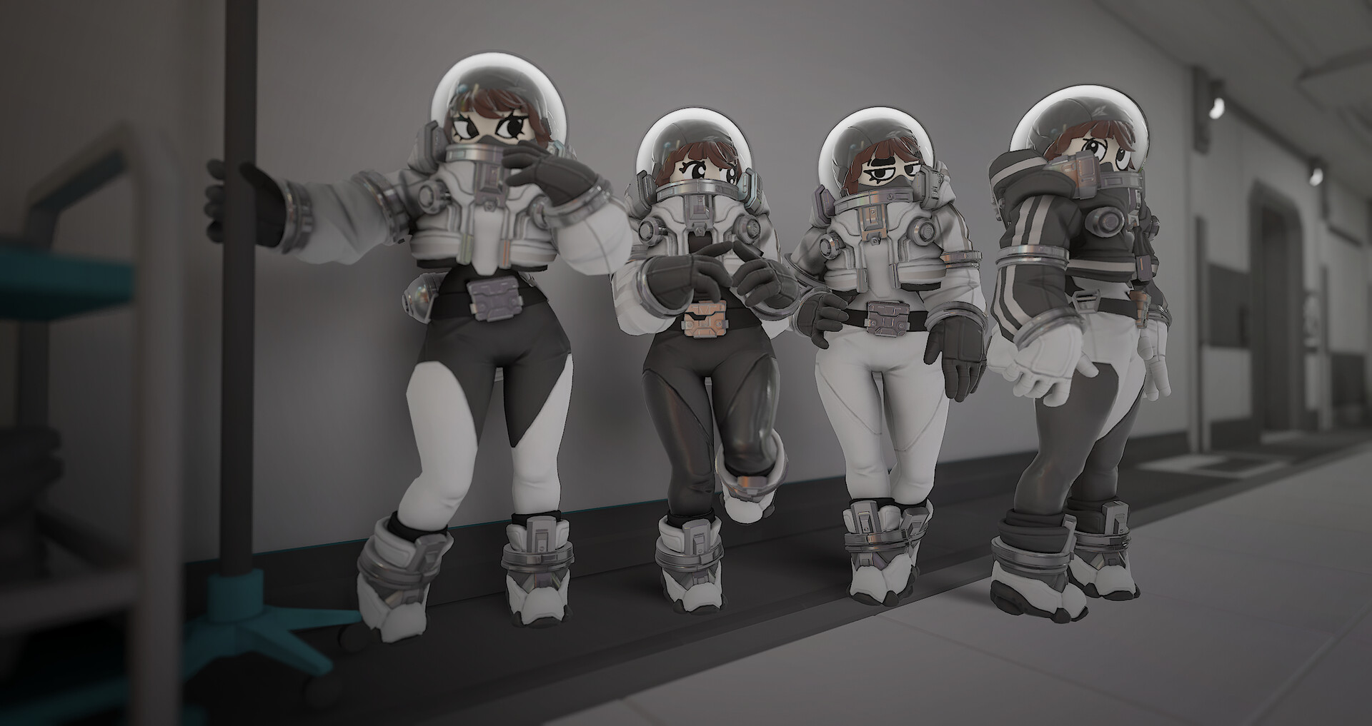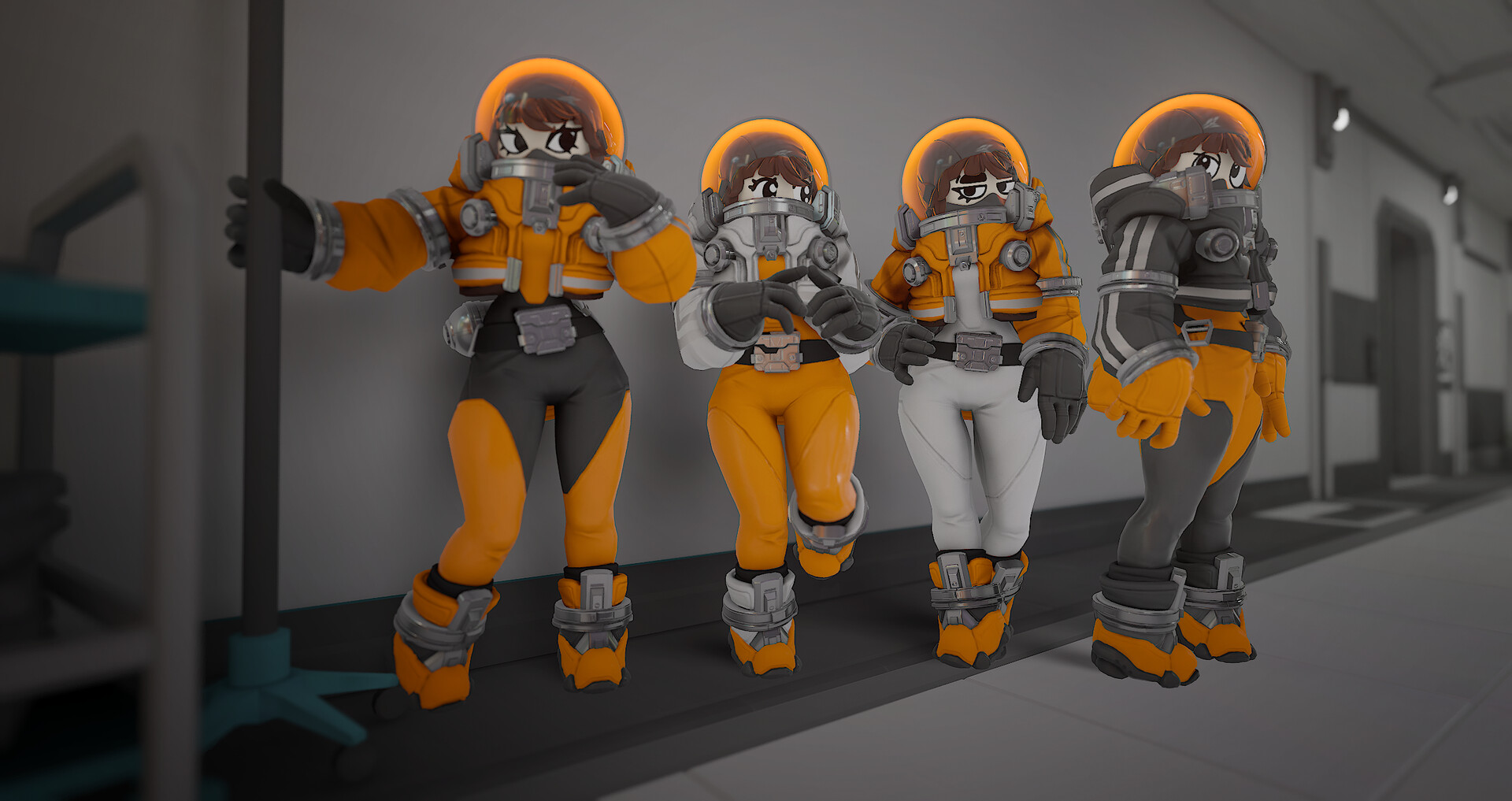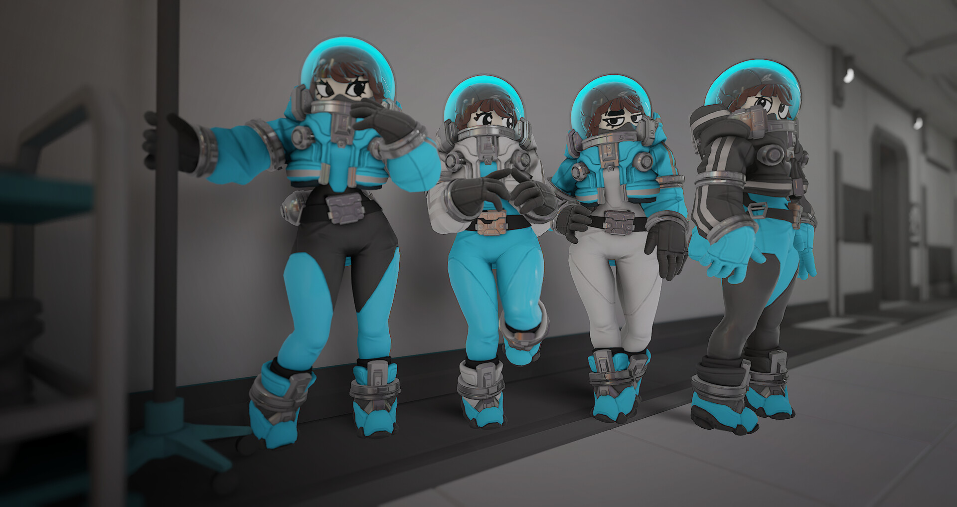 Play as Tiphanie, Theodore and Delphine, three skins that completely changes the body of the character ! Come with a unique suit and head design, interchangeable with other cosmetics.