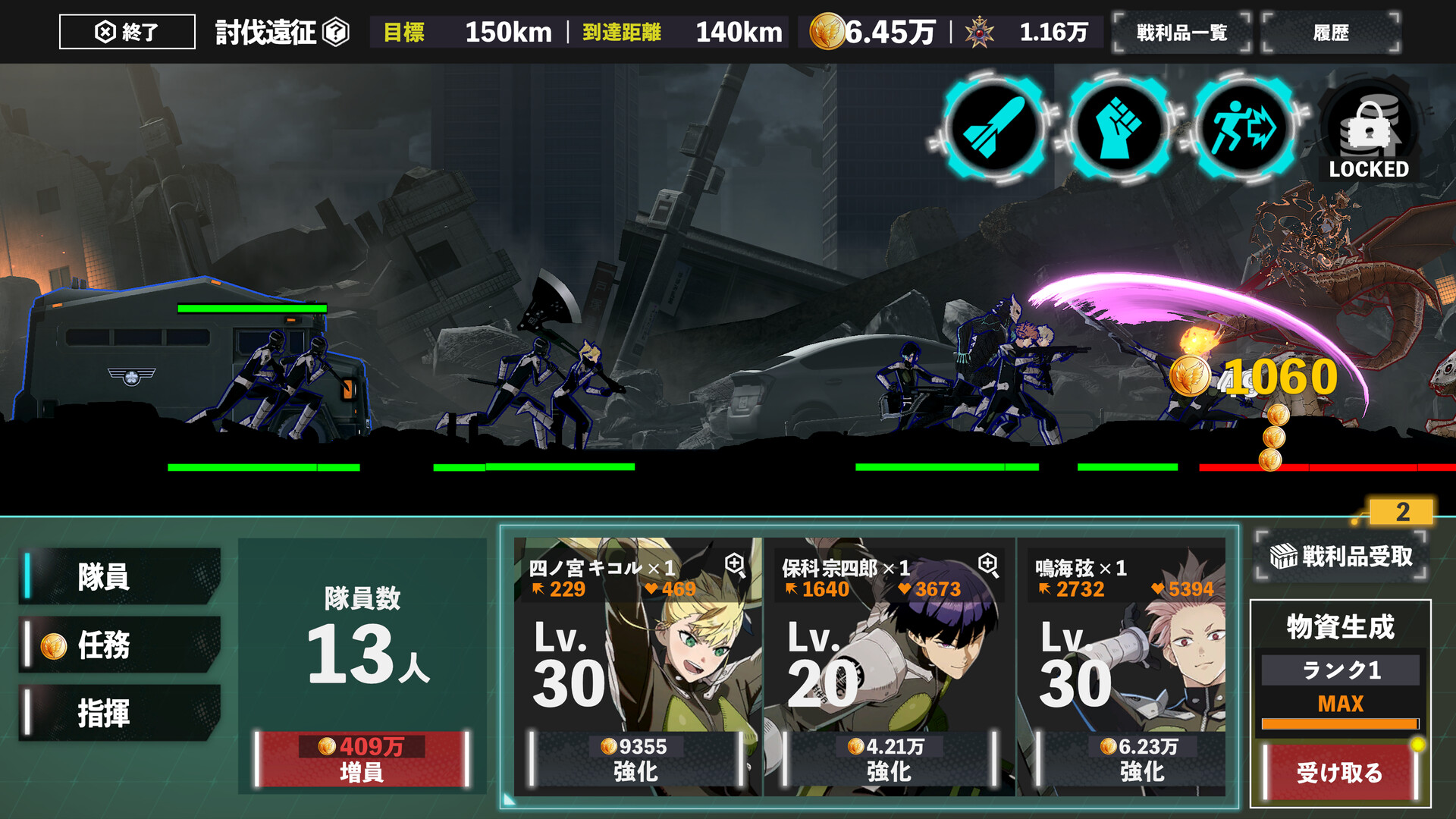 巨大な怪獣へ、逆転の一撃をブチ抜け!シンプル操作、爽快な一撃。さぁ、圧倒的なグラフィックで再現された『怪獣8号』の世界へ。