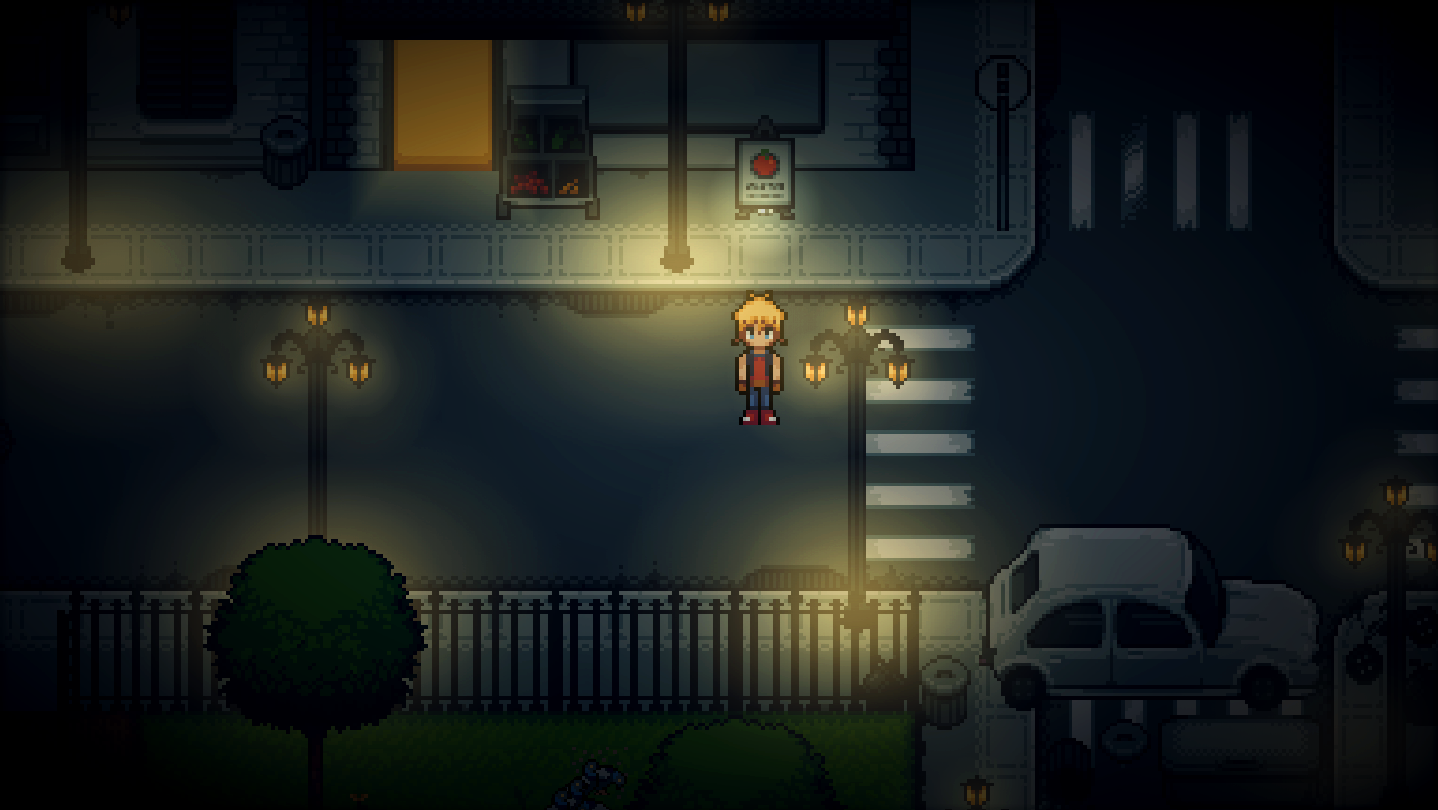 • Explore, talk to NPCs and find gems in overworld then trade them for delicious healthy snacks which you can later use to brighten your mood up during fights.