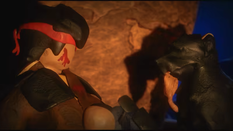 An epic western tale about a man and his dog travelling through a postapocalyptic world in a claymation style. Open world third person shooter.
