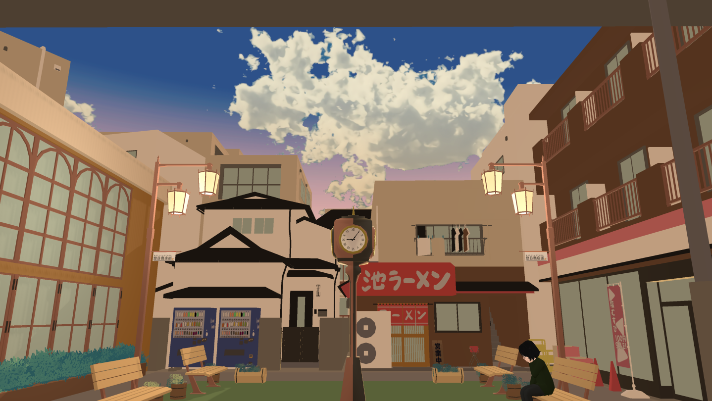 The scenario progresses as you interact with the facilities and various people in the shopping district.