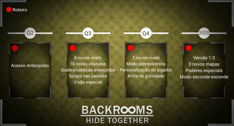 Sobreviver exige estratégia, furtividade e nervos de aço. Fique com sua equipe — ou corra o risco de se perder para sempre. Os Backrooms não perdoam.