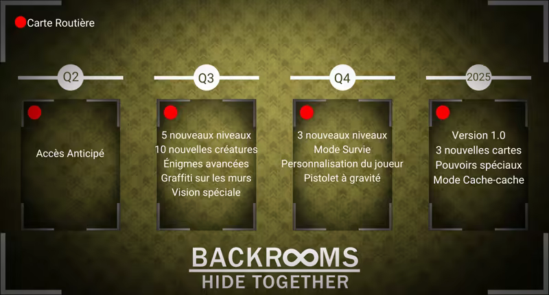 Avez-vous ce qu'il faut ?La survie exige stratégie, discrétion et sang-froid. Restez ensemble ou disparaissez à jamais. Les Backrooms ne pardonnent pas.