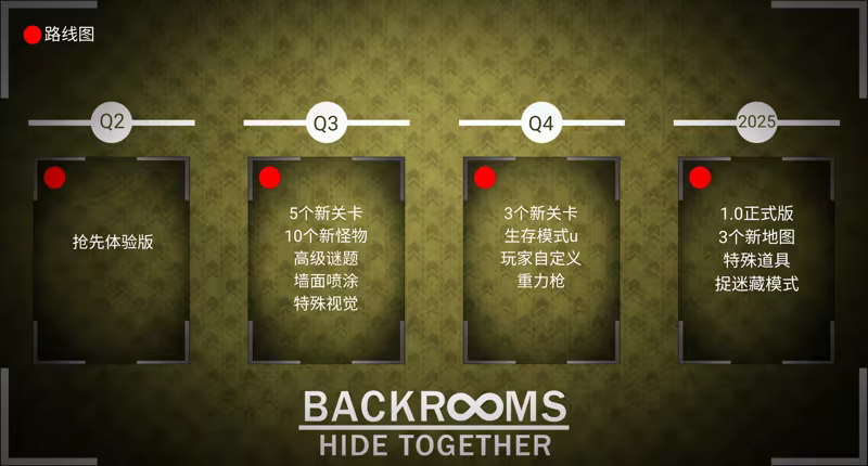 生存需要策略、潜行和强大的意志力。紧跟你的团队 — 否则,你可能永远迷失在此。Backrooms无情。