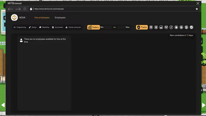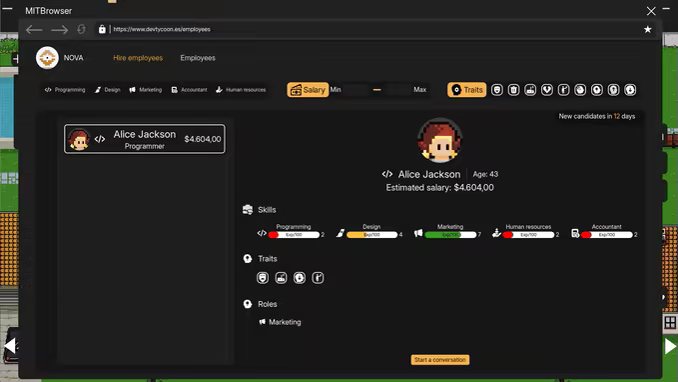 Each employee in DevTycoon has unique skills and traits, which makes each game a dynamic experience full of surprises. Managing these talents, making the most of them or facing their challenges will be essential to achieve success in the competitive world of software development.