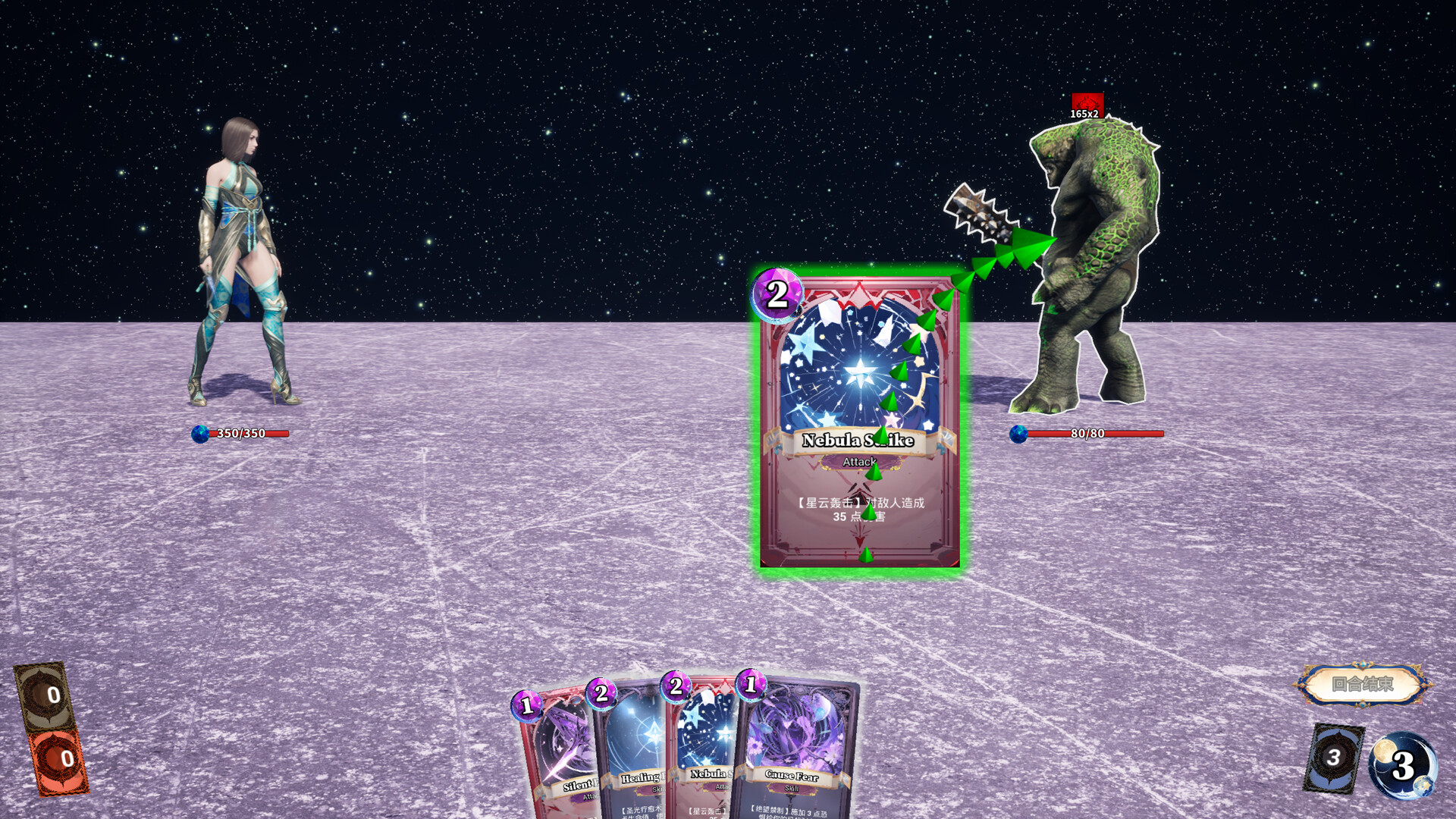 3.还有的卡牌不需要选中对象,只需要拖拽它放到界面的正中心后松开即可使用。