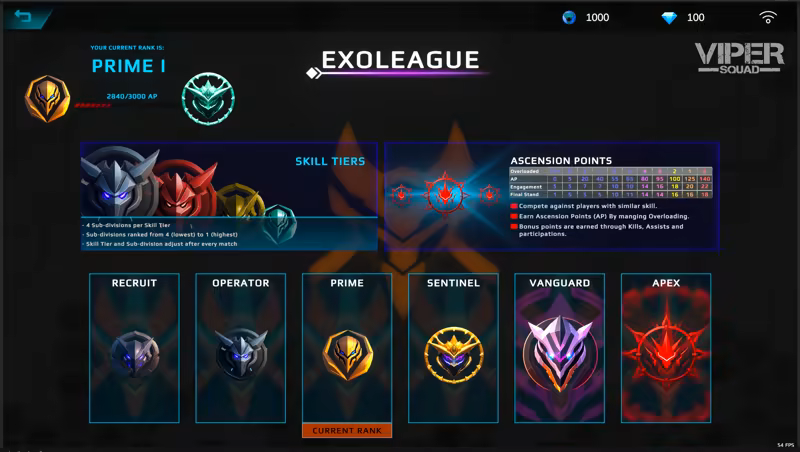 - Climb through six ranks, from Recruit to Apex