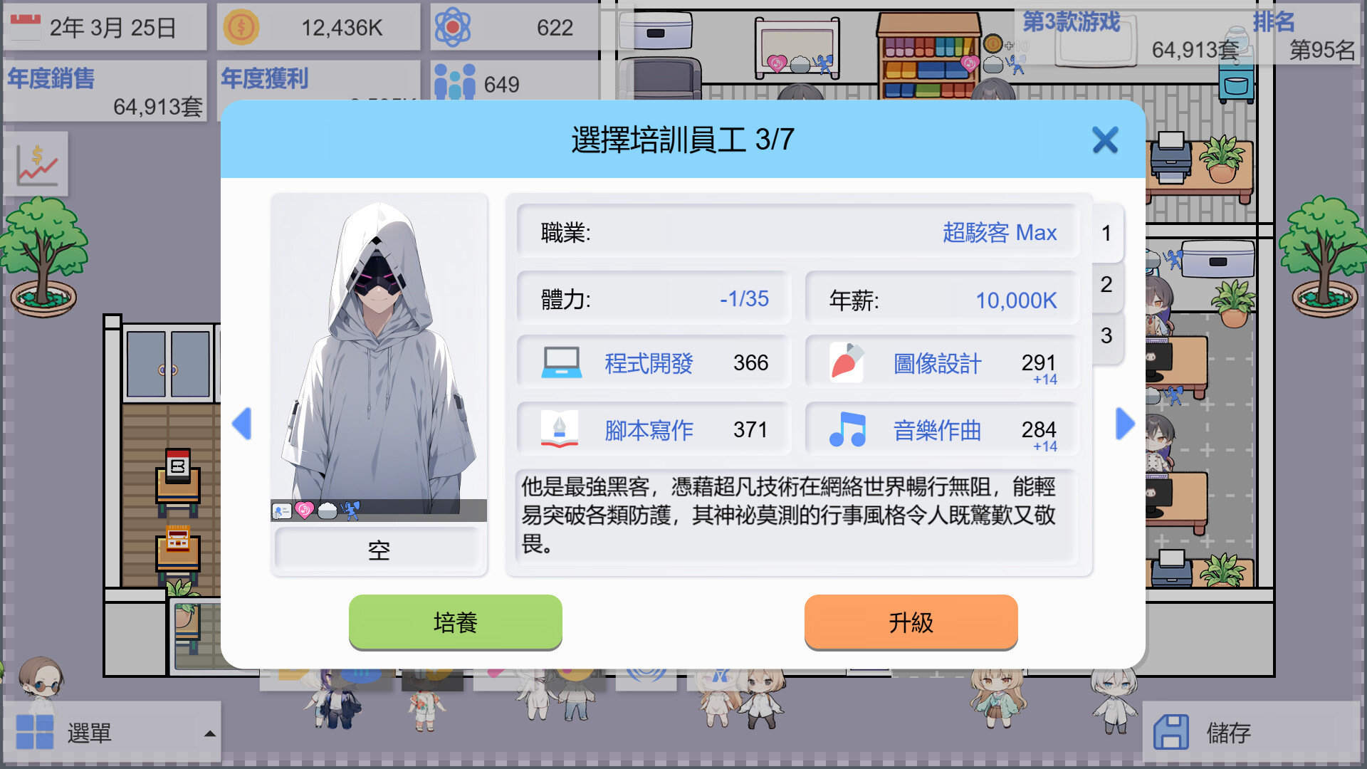 • 招聘員工:從策劃到美術,組建你的夢幻團隊,為你的遊戲作品提供全方位的創意與支持。