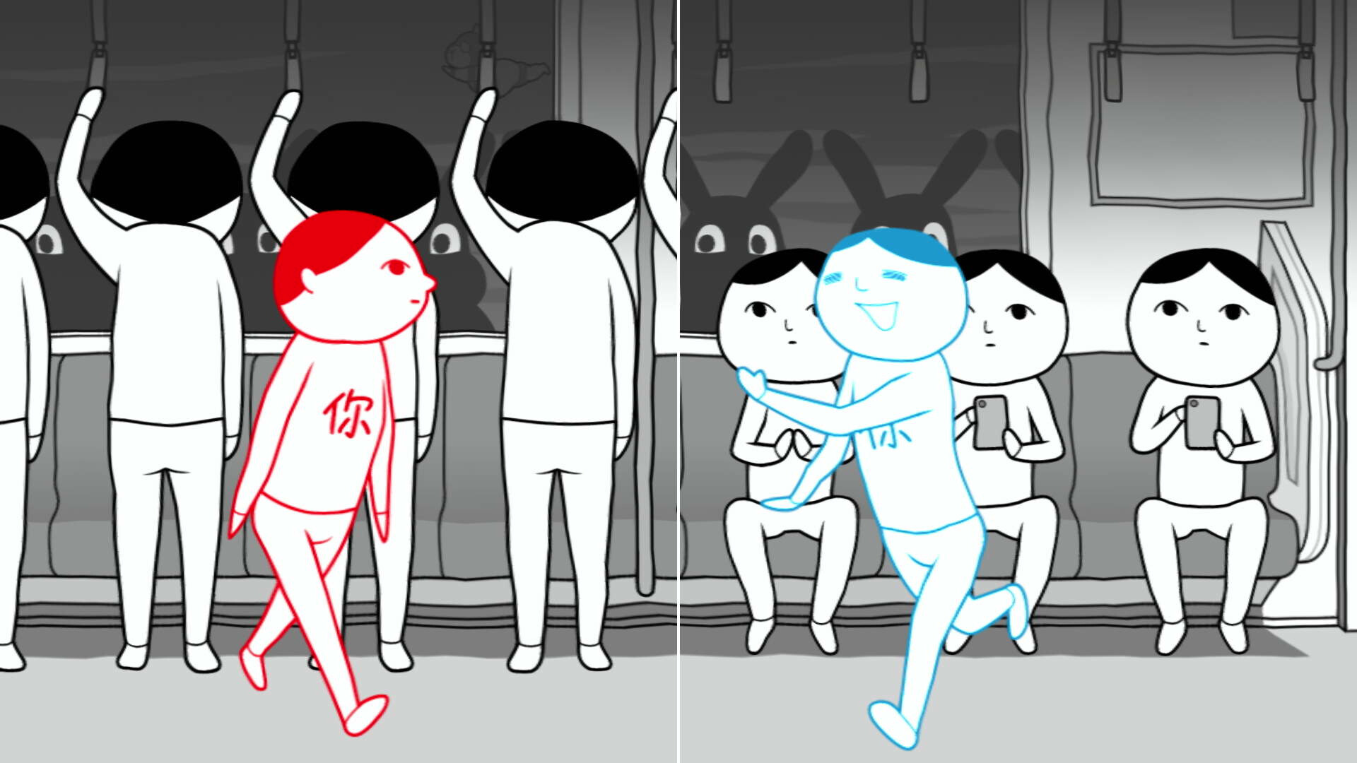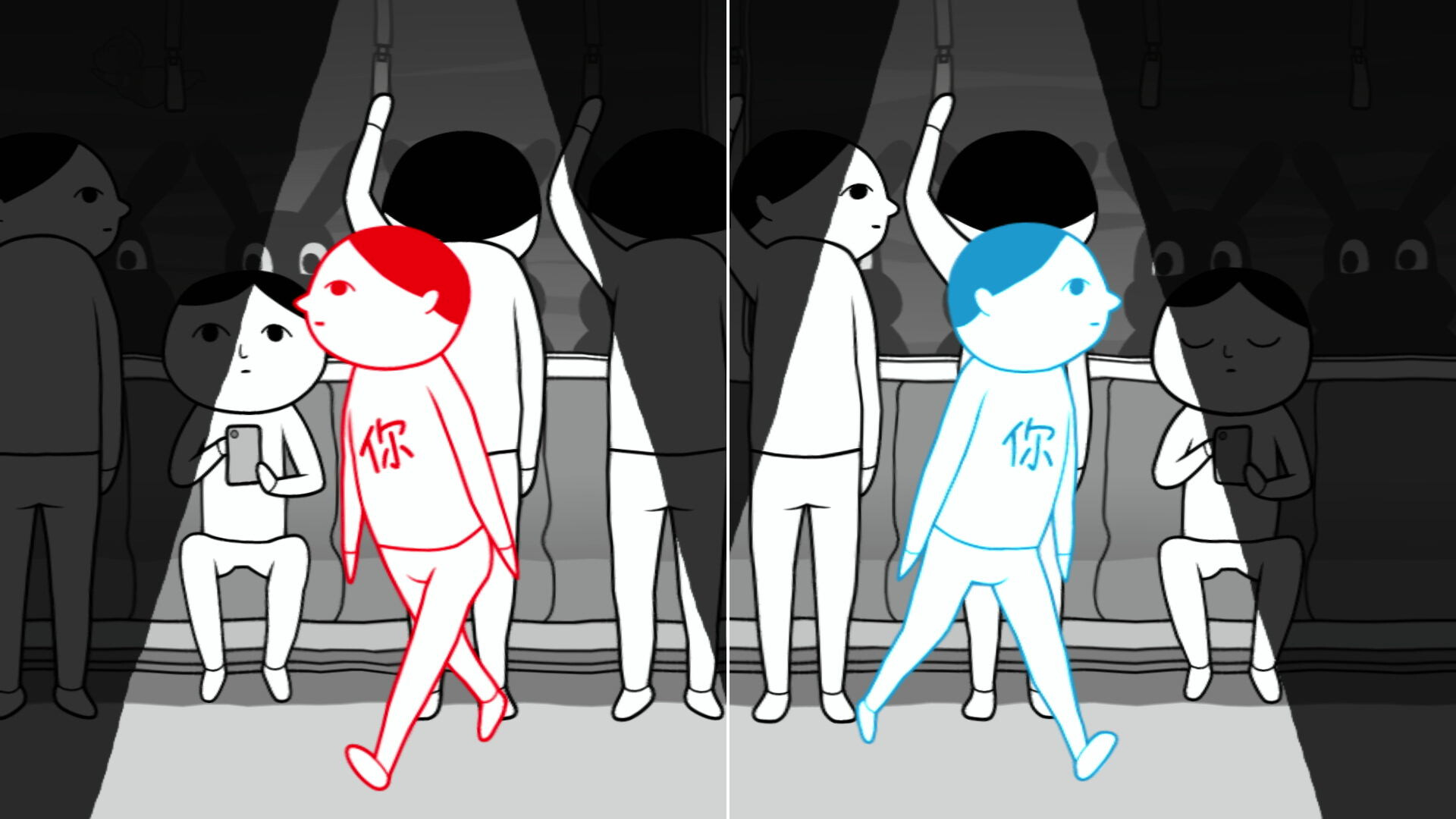 仔細觀察,從八個"你"中找出唯一不同的"你",然後穿越到最後一節車廂,找到出口吧!