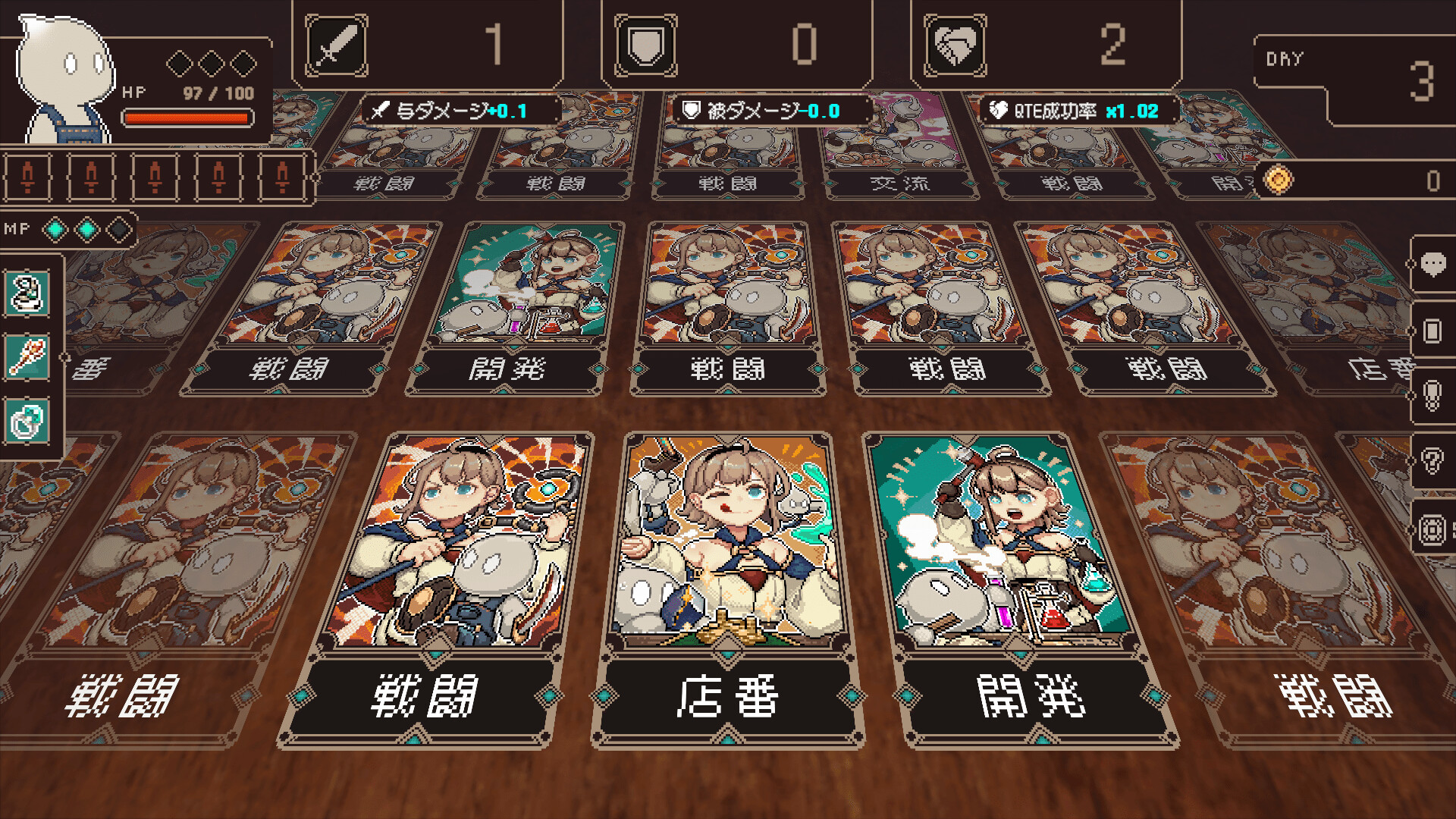 Save up money by working as a “shop keeper” or in “battle” to make new equipment!
