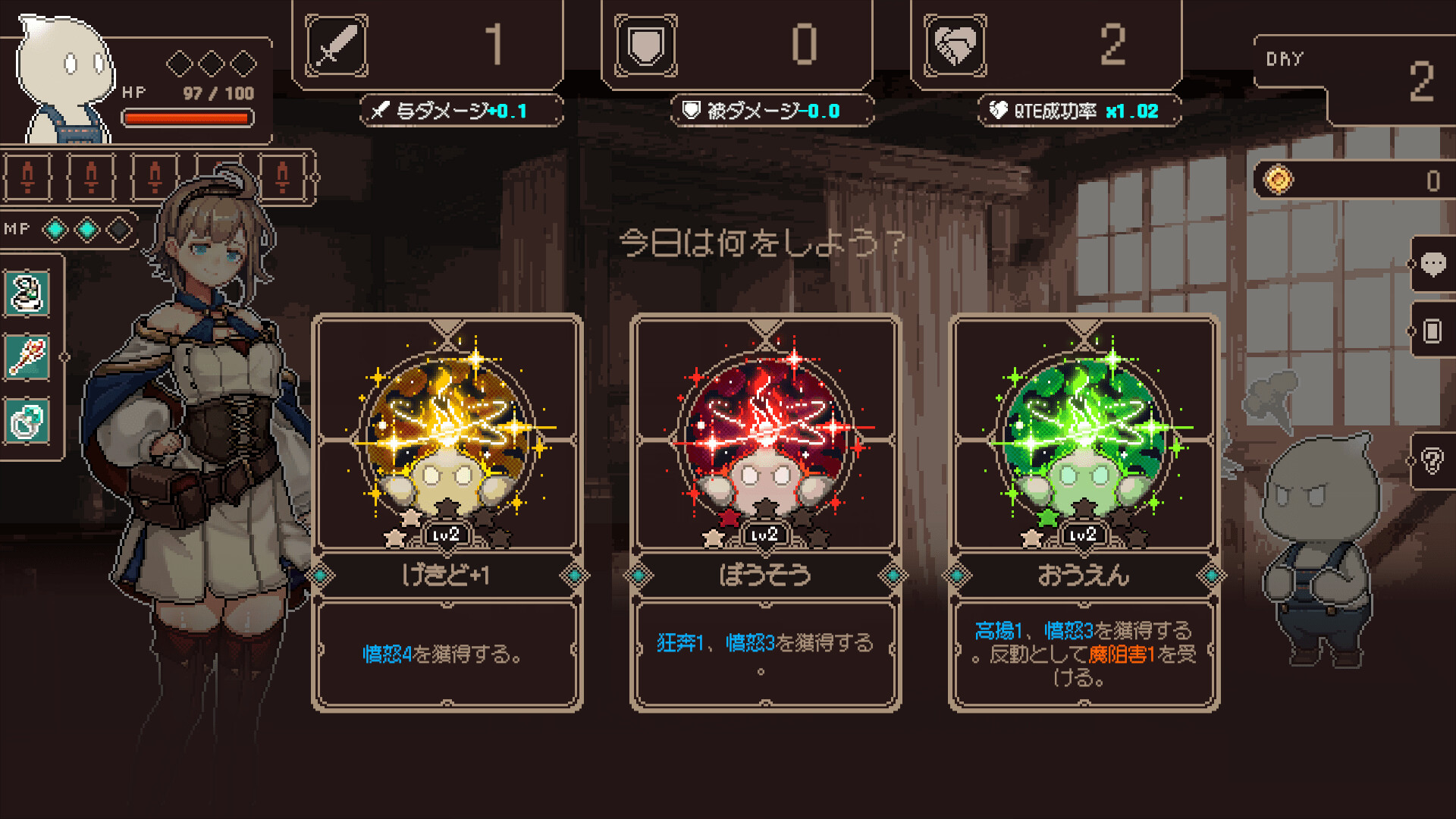 Battle? Rest? Learn a skill? Earn money? Every action will affect the outcome of your trial!