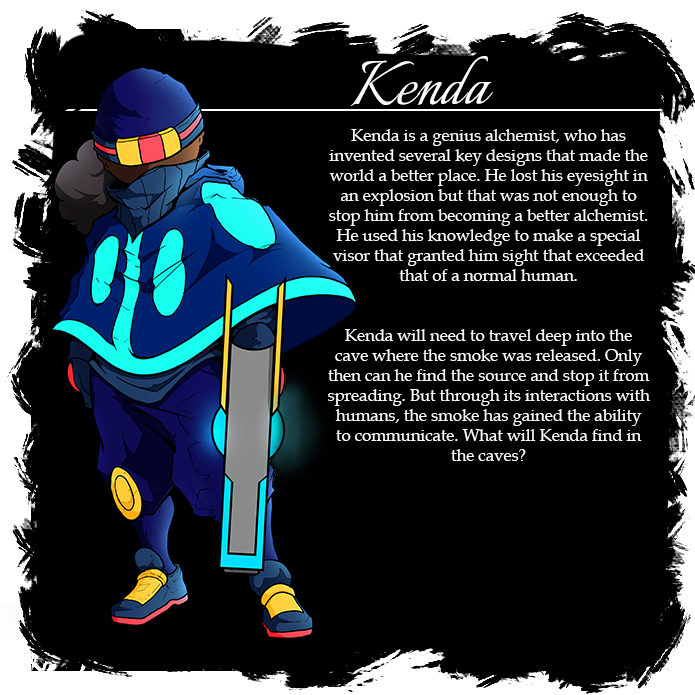The Smoke follows Kenda as he tries to save the world. He will jump, dash and shoot through each obstacle. But this universe is bigger than him. To save the world you need more than a single man. These are the other main characters in the story.