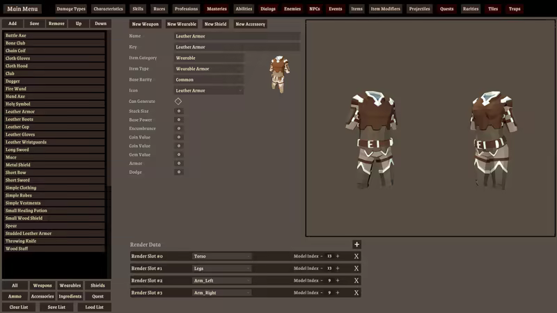 Most game data can be fully modified and shared (eventually). Currently the following types of data can be edited: Abilities, Characteristics, Damage Types, Skills, Item, Item Modifiers, Races, Professions, Projectiles and Rarities.
