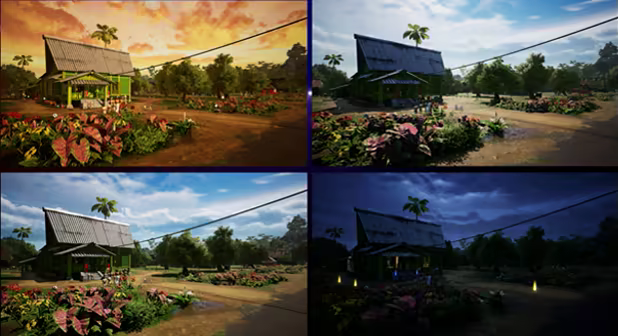 Explore a handcrafted Southeast Asian village brought to life with: