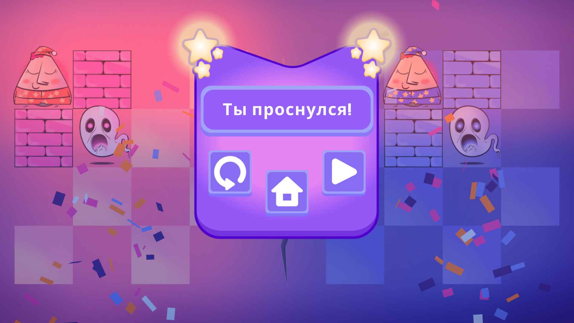 В Twins & Dreams вы управляете двумя персонажами, застрявшими в мире снов. Чтобы выбраться, нужно провести их к кнопке «WAKE» одновременно! Но есть подвох: каждое ваше движение влияет на обоих, а призраки начнут преследовать вас, если будете невнимательны!