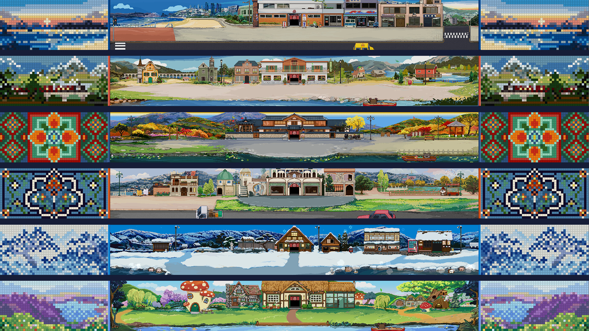 樱花之城、竹林庭院...从巨型蘑菇林立的童话森林到微风阵阵的海滨港口,体验多种温泉地图和特色装潢,打造风格各异的温泉天堂!