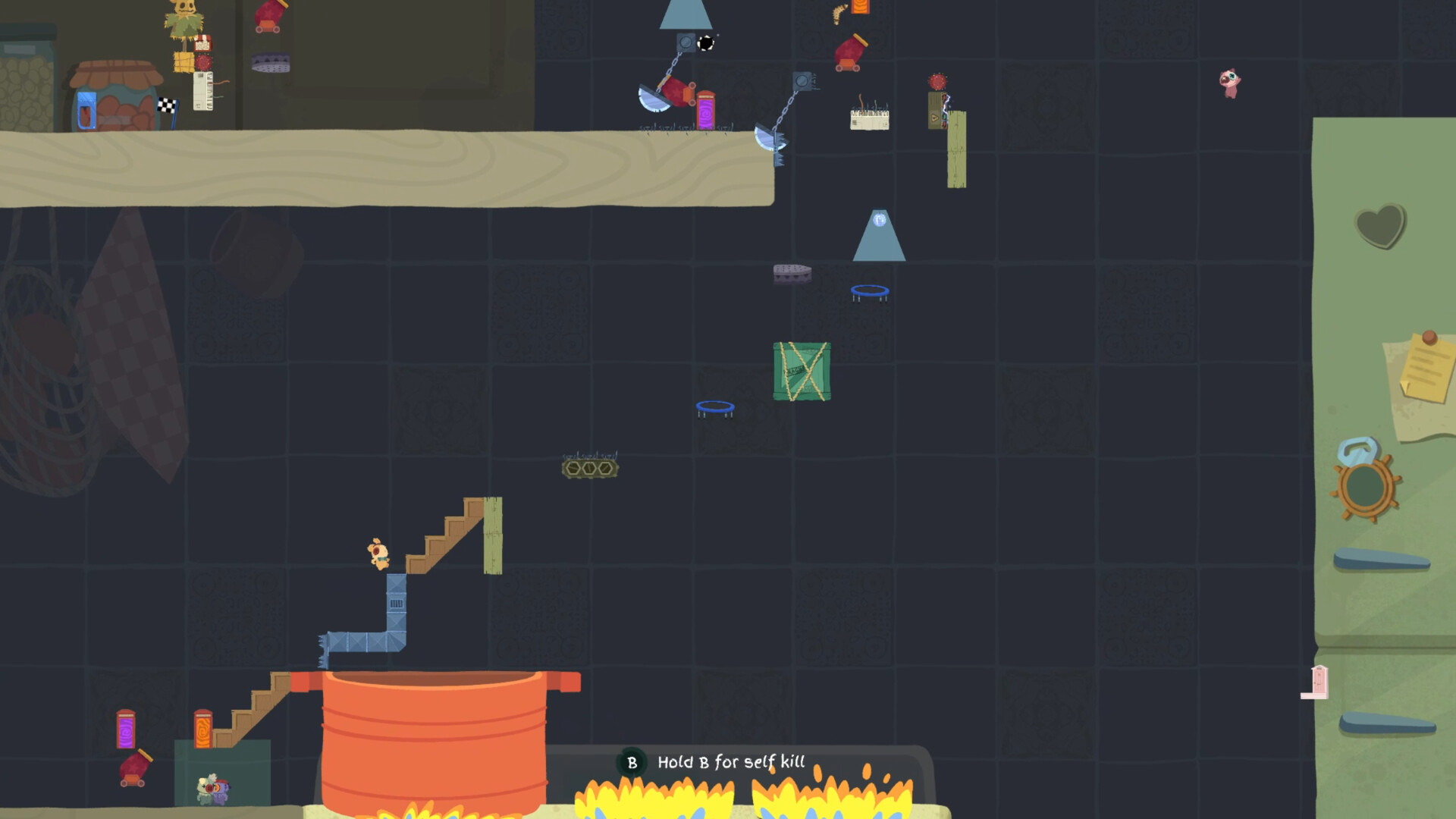 In Patchkins, each round starts with players analyzing the map and preparing their strategies. Then the drawing phase begins, where you sketch objects to place on the course. Successfully placed objects can block, boost, or sabotage your friends as everyone races to the finish.