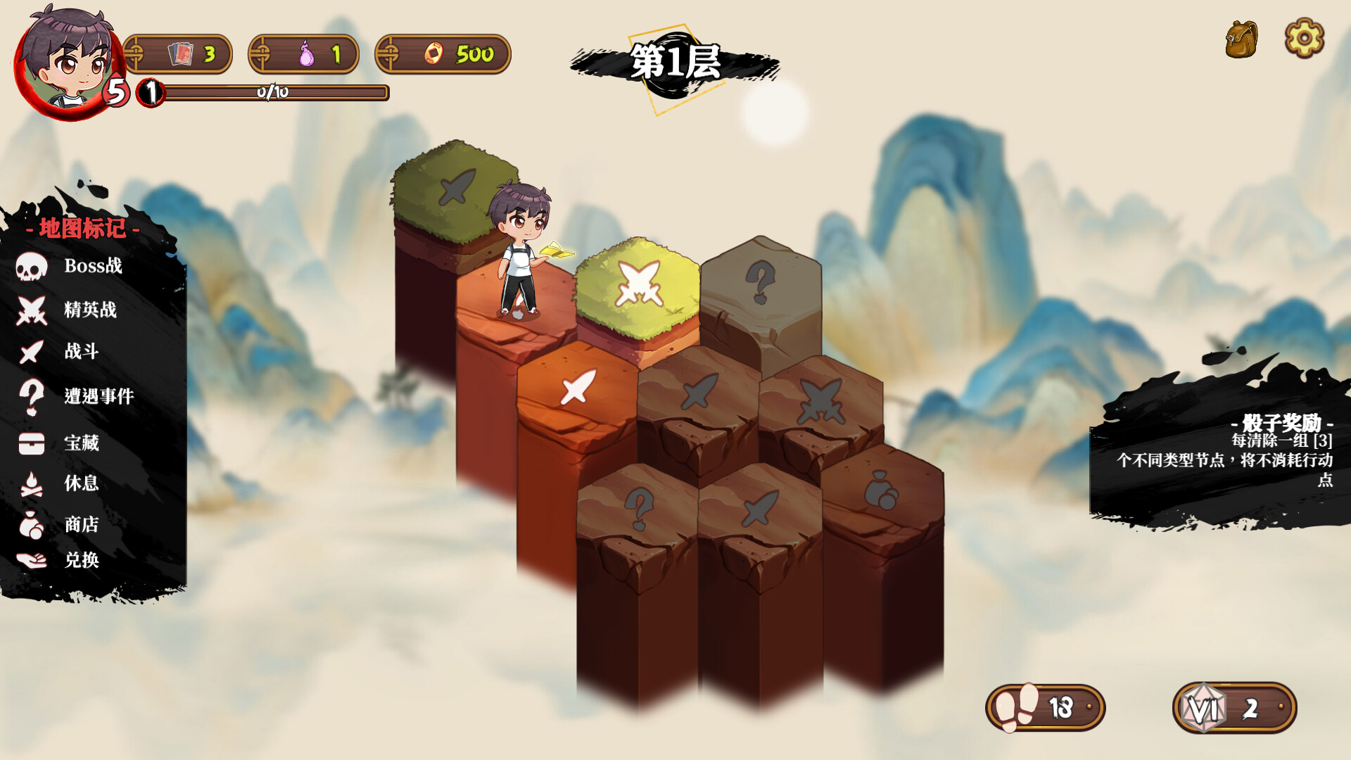 • 探索各種六角形節點,包括戰鬥、寶箱、事件等,不斷強化你的隊伍。