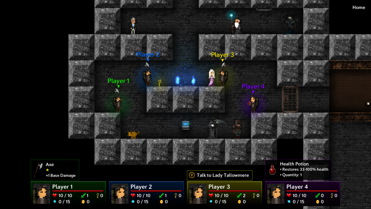 Tallowmere offers single-player and local co-op madness (up to 4 players sharing the same screen) for fun frantic couch gaming.