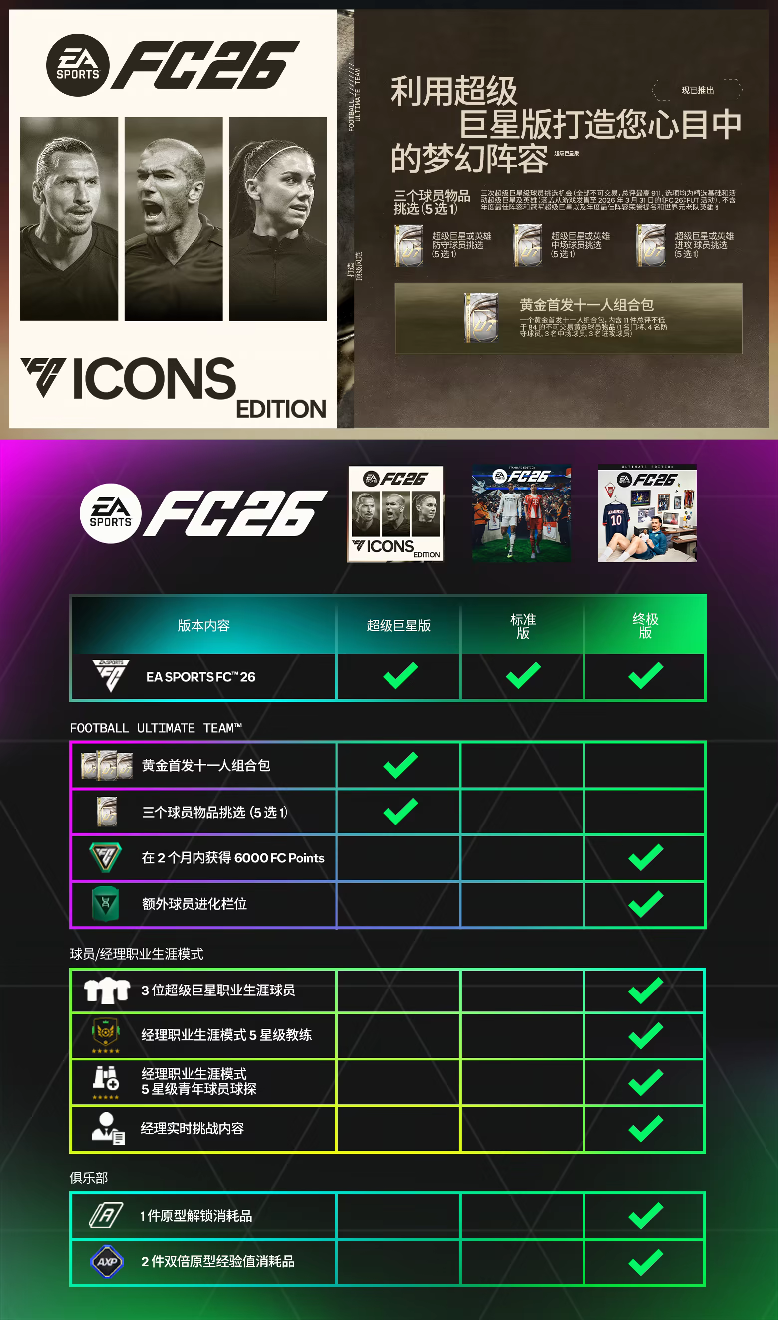 《EA SPORTS FC™ 26》超级巨星版内容包括‡:
