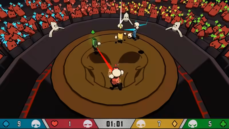 In this four-player showdown, pick up your own skull and hurl it at your opponents to score points and defeat your rivals.Show off your skills, dominate various modes and maps, and claim victory with high scores!