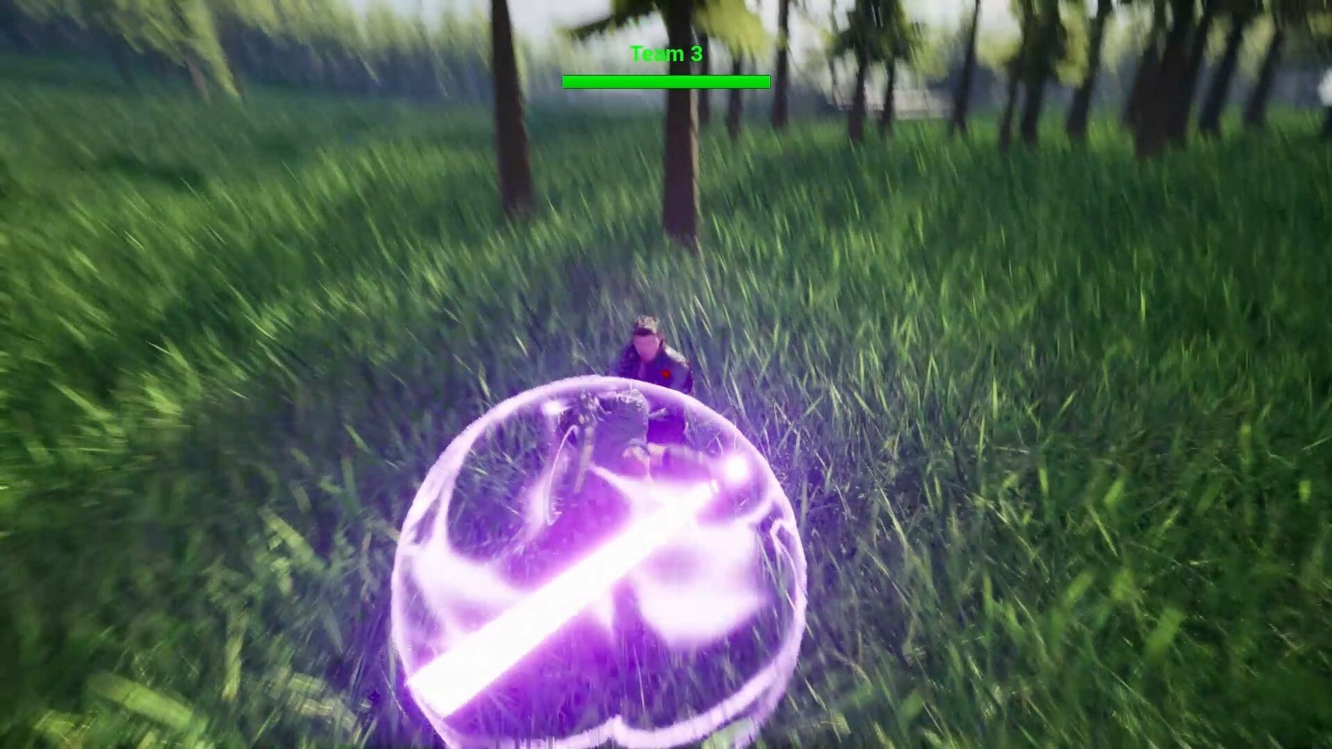 First Person Shooter cross with Real Time Strategy and Role Playing Game, Capture the flag Elements, top down unit control, Base building and inventory and ability systems for magic users.