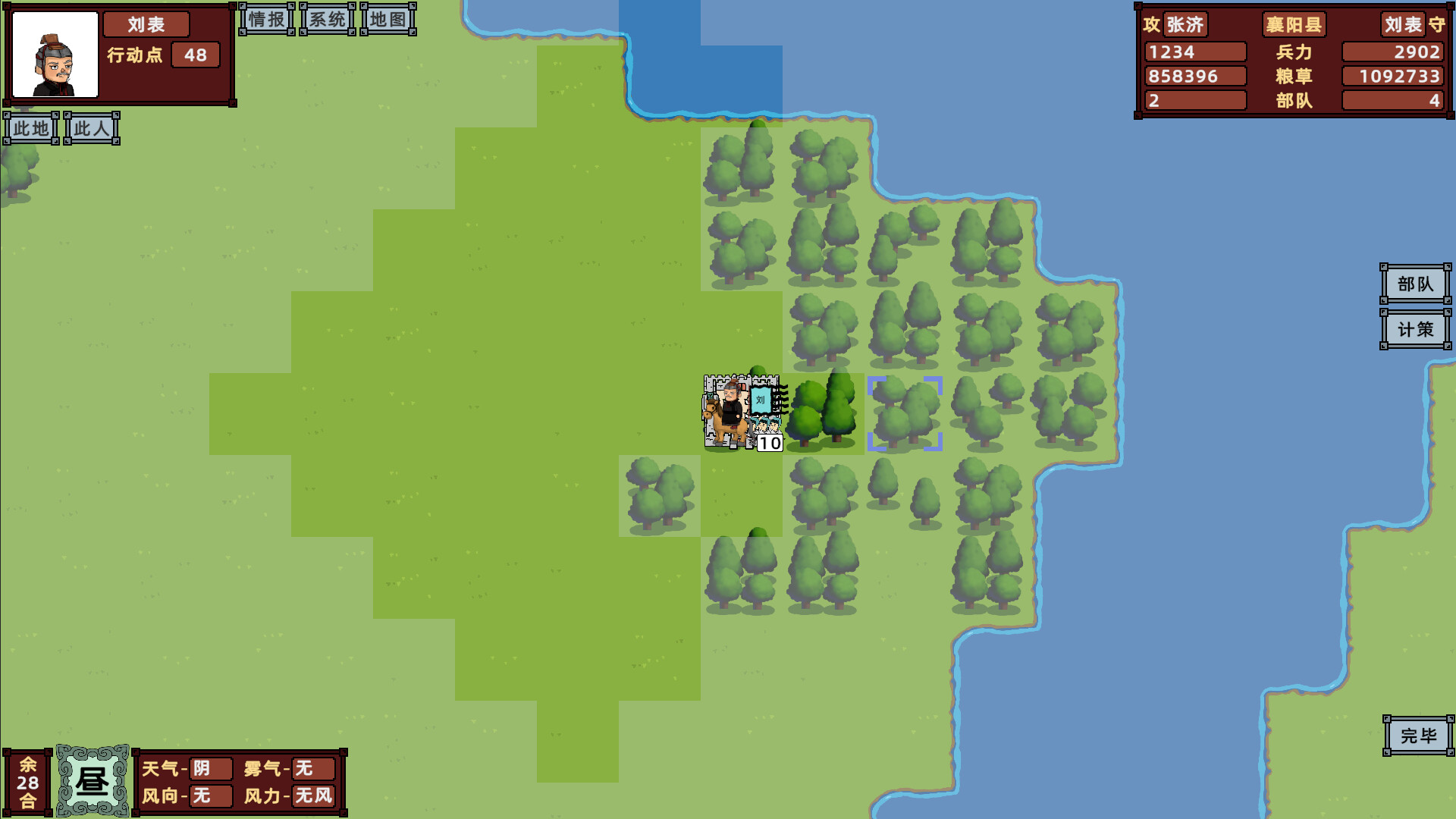 5. The battlefield is divided into mountainous, plain, water and forest terrains