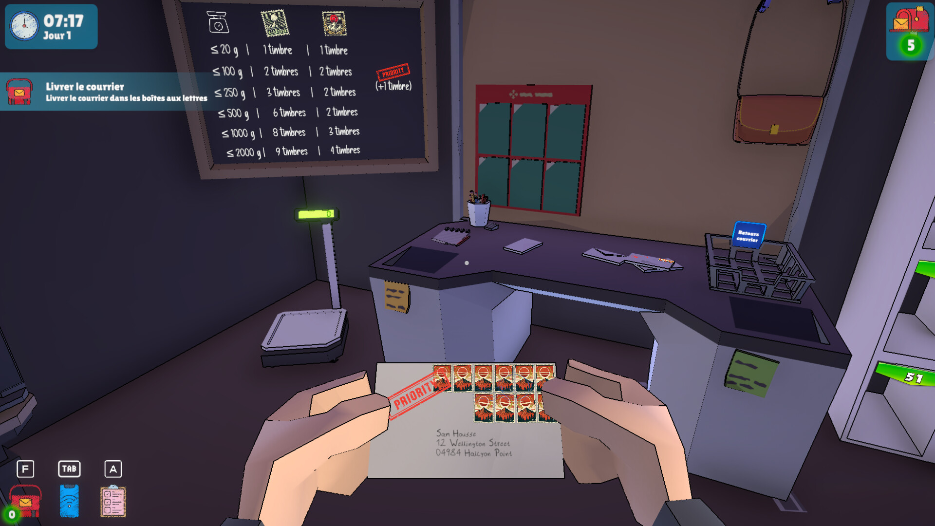 • Immersive Deliveries: Navigate the quaint streets of the town on foot or by bike to deliver mail to the correct mailboxes.