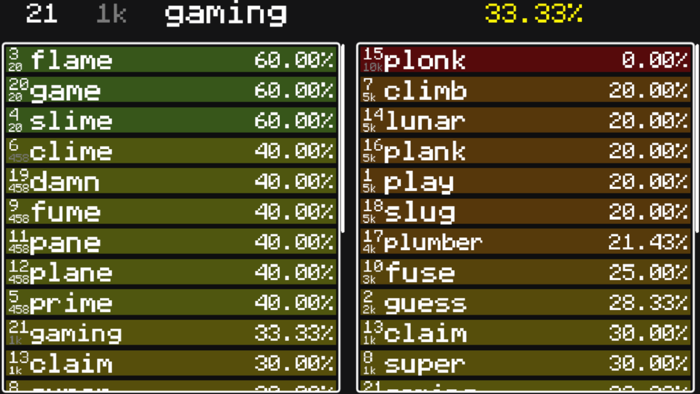 A word-guessing game in which you have to guess the word with hinted "similarity" value