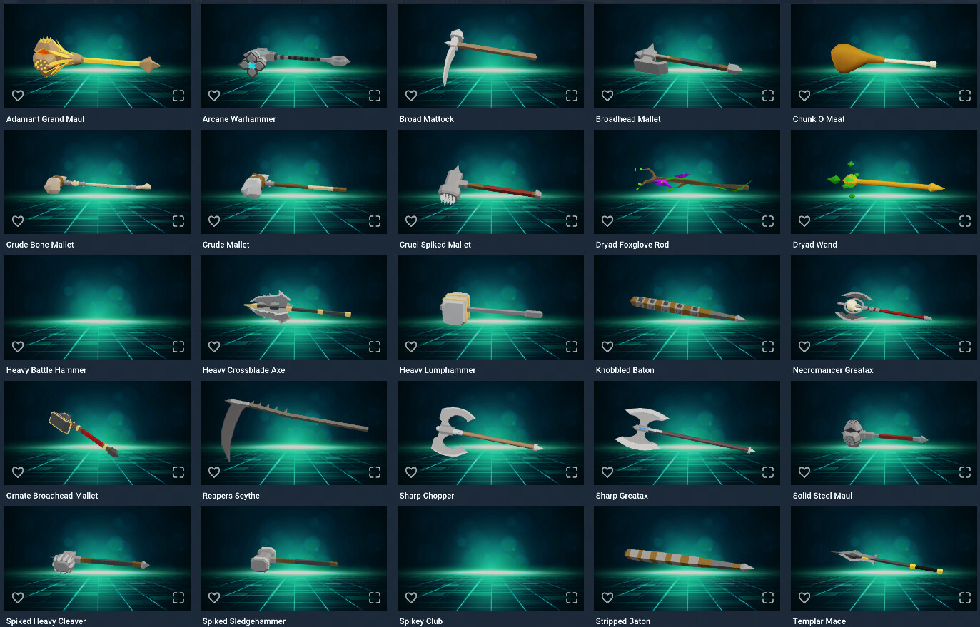 Featured in this pack are 30+ brand new mixed-style weapons to augment the choice of weapons available in your LowPoly adventures, including the Ornate Mallet, the Reapers Scythe and the Templar Mace!