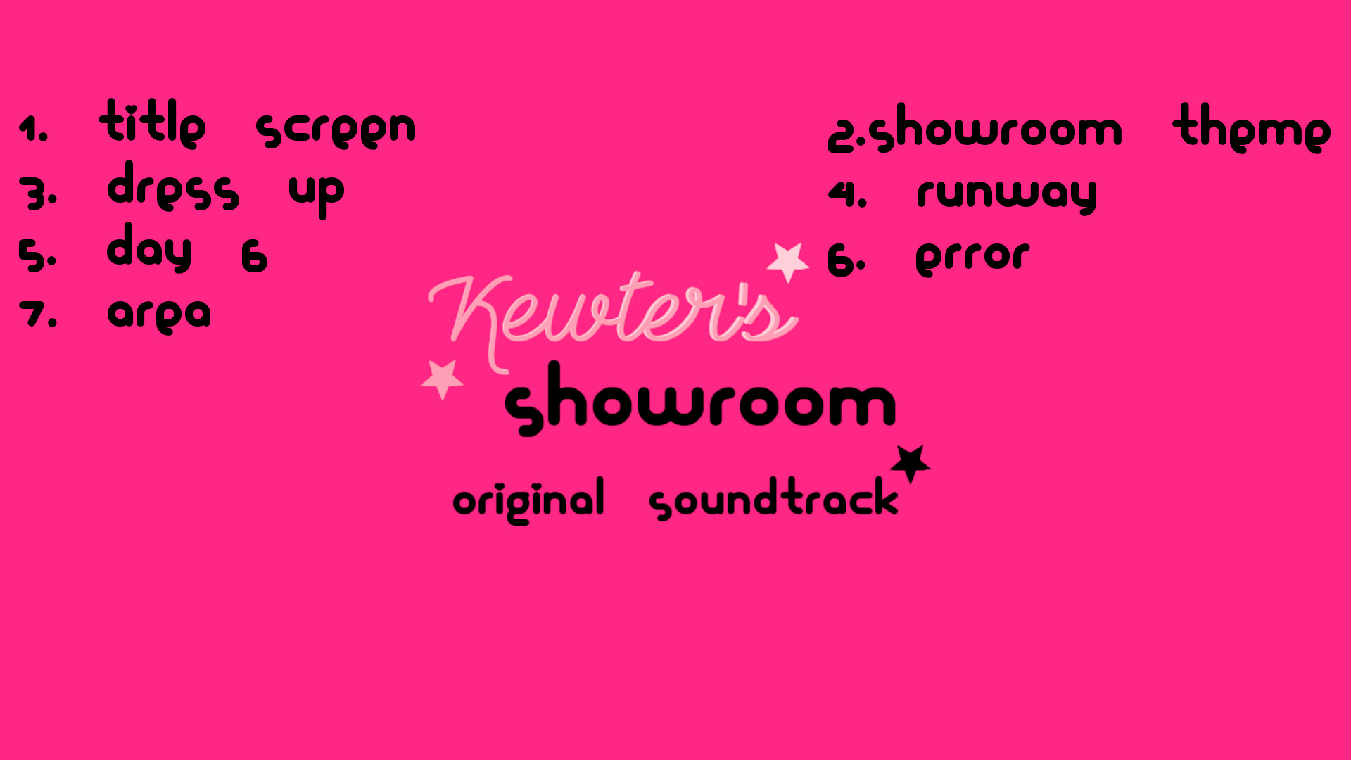 Enjoy the original soundtrack of Kewter's Showroom! Listen to the showroom tunes whenever you want!