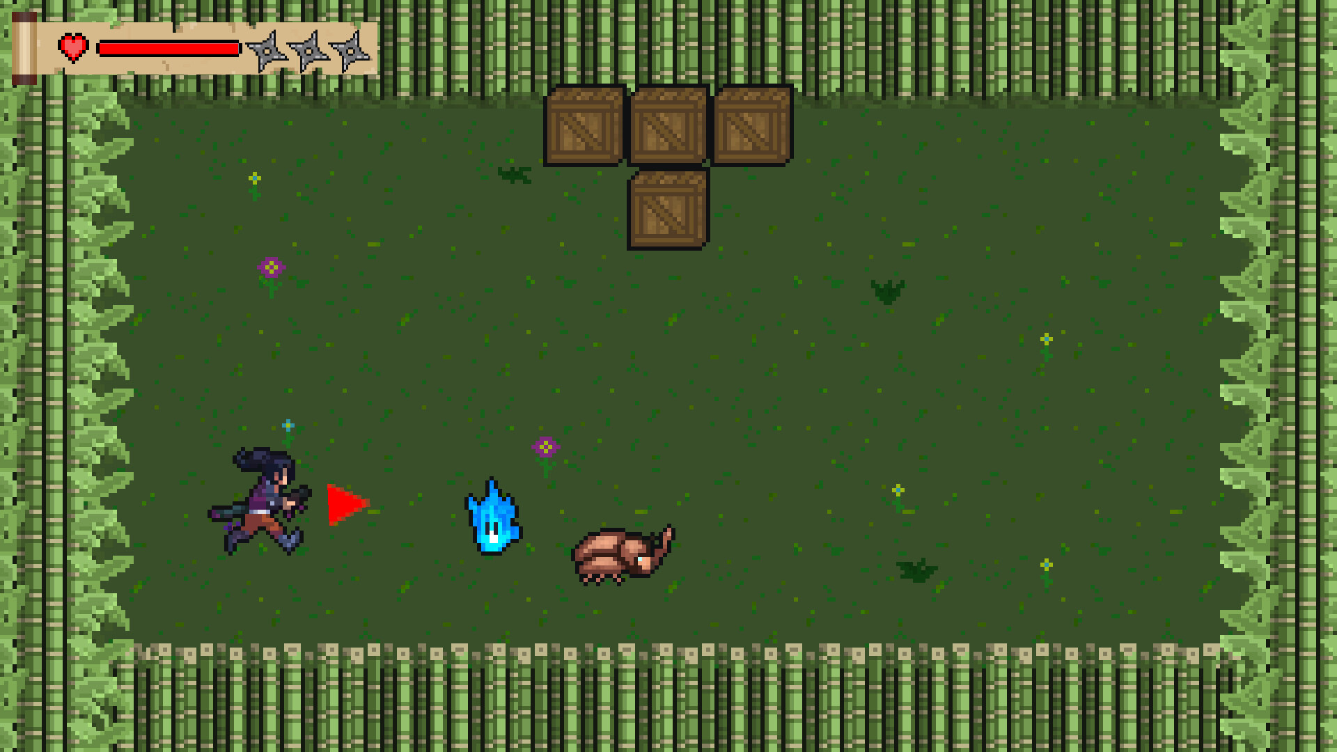 Samurai Ghost Revenge is a rogue-lite, top-down action game which invites you to explore the cursed grove and battle its inhabitants in search of the samurai ghost's hiding place. Slash with your sword, throw your shuriken and uncover other hidden weapons. To succeed, you will need to carefully juggle different kinds of enemies, keeping them at a distance. Use your roundhouse slash to make some space if enemies swarm you.