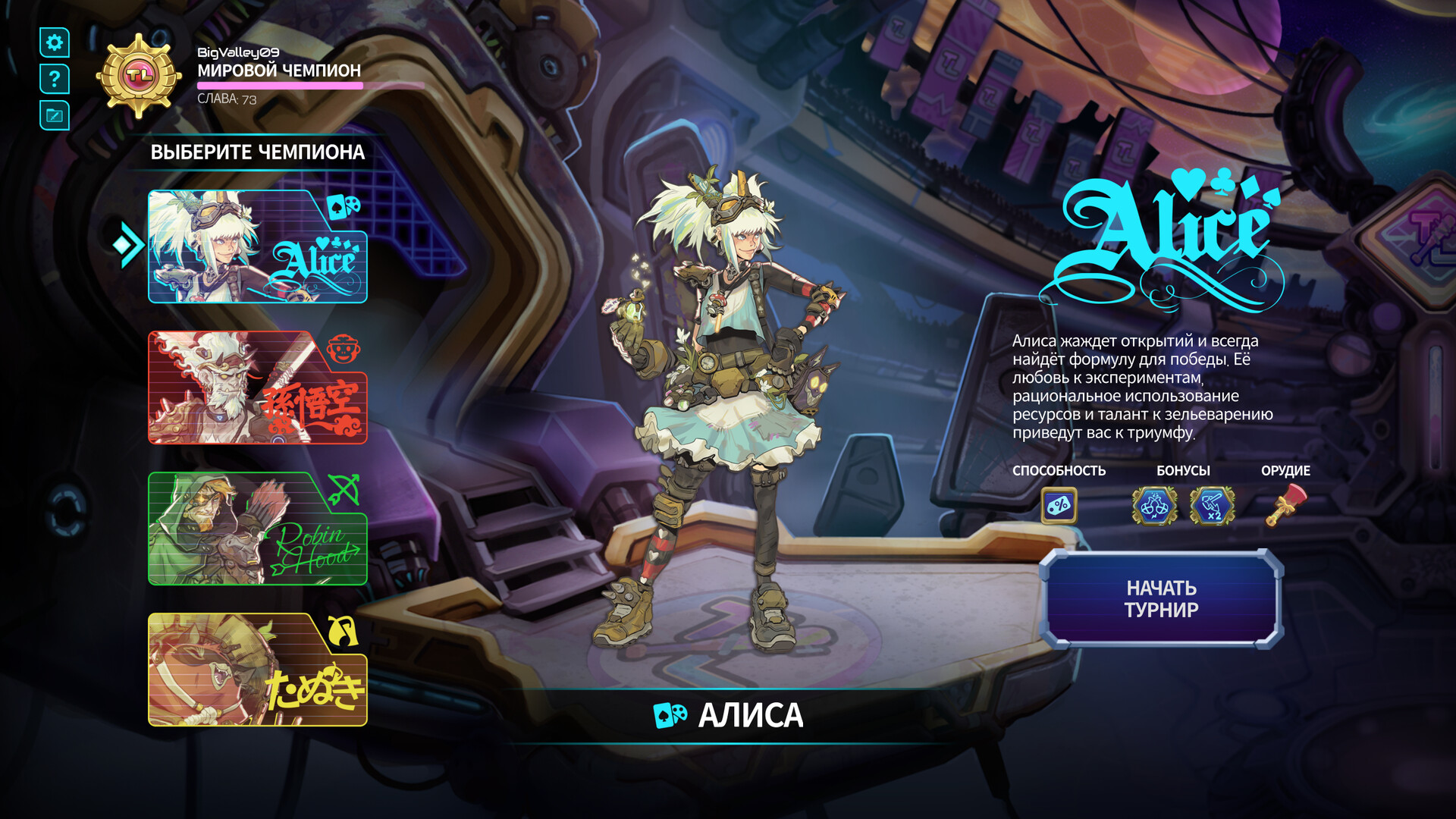 Выберите своего любимого героя (или злодея) со всей Мультивселенной. У каждого чемпиона есть особые способности, а также уникальные вещи и бонусы, которые можно купить во время турнира. Что бы вы ни выбрали — дразнить противников зельями и эликсирами или просто бить по ним огромной булавой (БОНЬК!), — вам доступно множество стратегий и стилей игры.